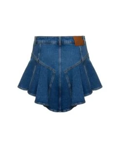 Alexander McQueen Blue Mini-skirt With Pleated Detail At The Back In Stretch Cotton Denim Woman