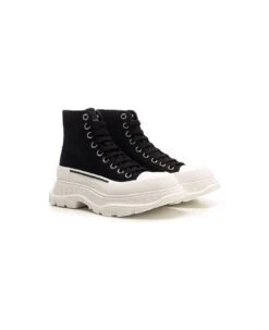 Alexander McQueen ‘tread Slick’ Black Boots With Embossed Logo And Chunky Platform In Leather Woman
