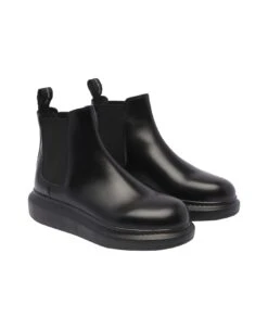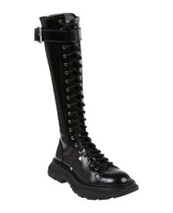 Alexander McQueen ‘tread Slick’ Black Boots With Embossed Logo And Chunky Platform In Leather Woman