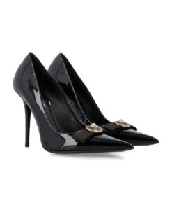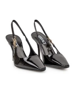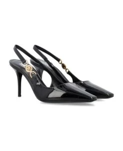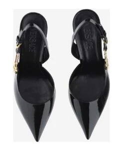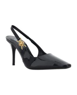 Versace Jeans Couture Couture Pointed Toe Slingback Pumps With Logo In Black Polyurethane Woman