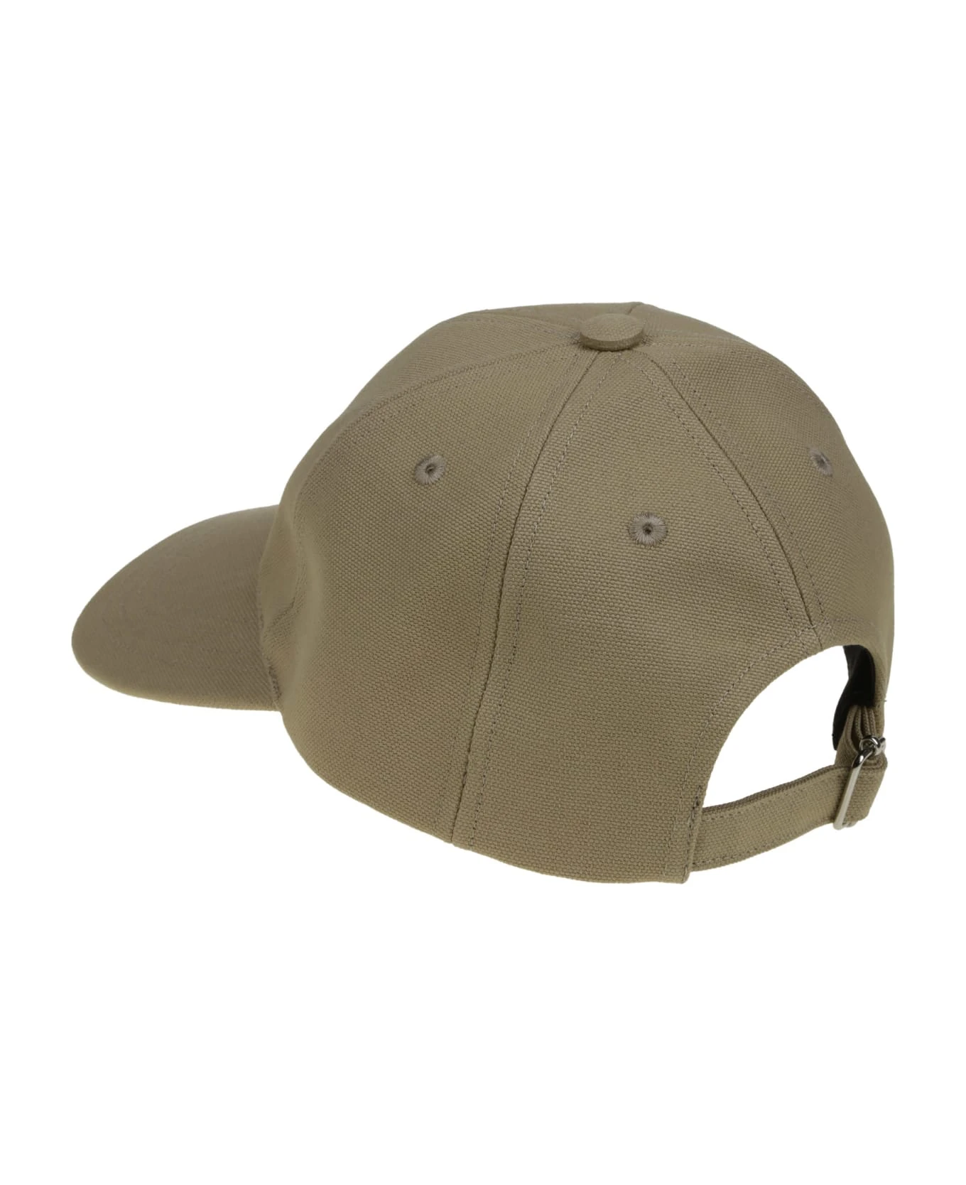 A. P. C. Beige cotton hat, front logo, adjustable closure.