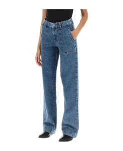 Seaside four-pocket jeans by A. P. C. crafted in stone-washed pure cotton denim. They feature belt loops on the waistband and front fastening with zipper fly and button. Regular fit with wide leg. The model is 177 cm tall and wears size 26.