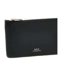 Willow’ leather card holder with logo print and a zip closure.