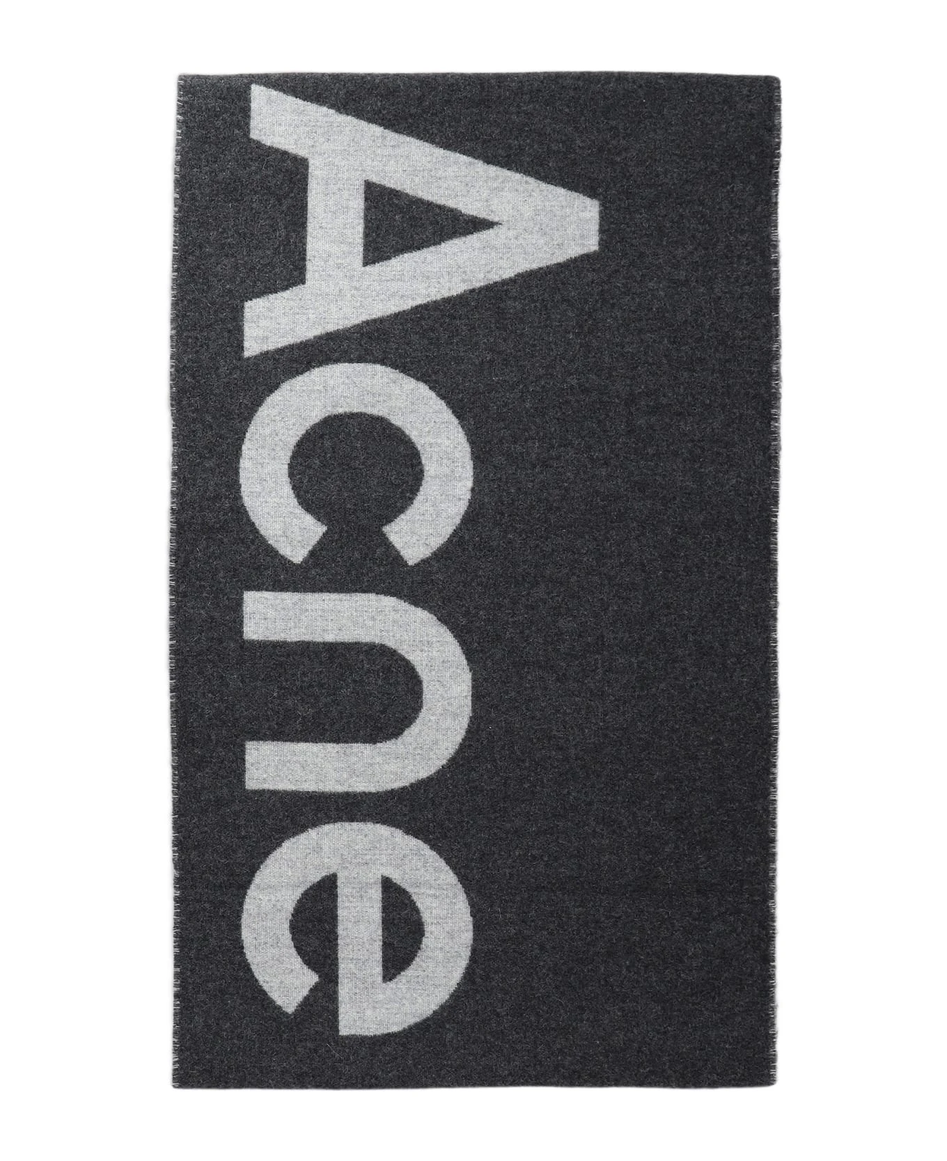 Scarve in black wool, rectangular shaped, contrast logo, 33% alpaca, 25% wool, 20% Nylon, 20% mohair, Made in Italy