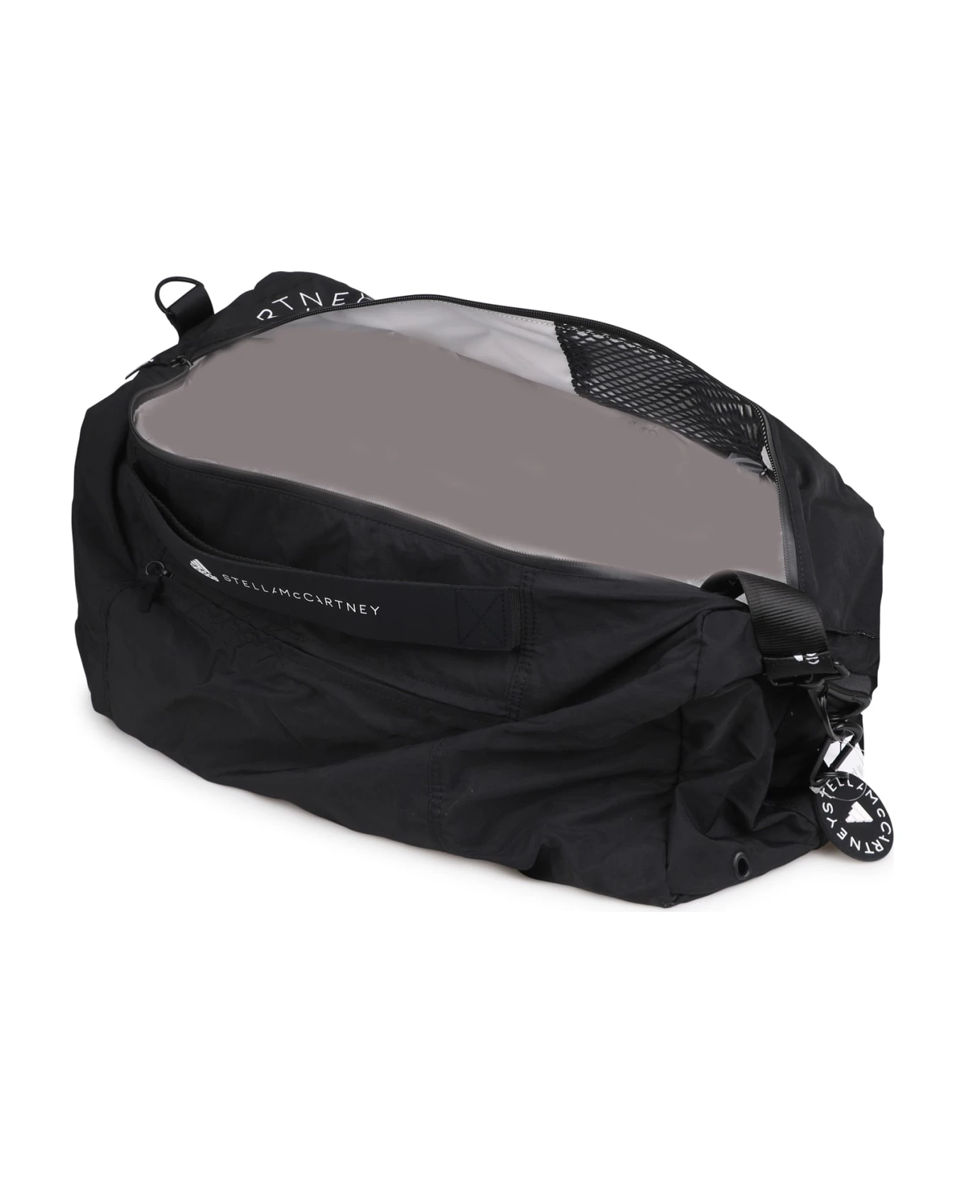 Studio gym bag from ADIDAS BY STELLA MCCARTNEYLogo-print to the front. Front pocket with zip. Mesh detail. Outer: 100% Recycled Polyamide; Lining: 100% Polyethylene; 100% Recycled Polyester. Made in China.