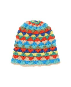 Alanui Over The Rainbow cloche handmade in pure cotton crochet. Unlined, one size fits all.