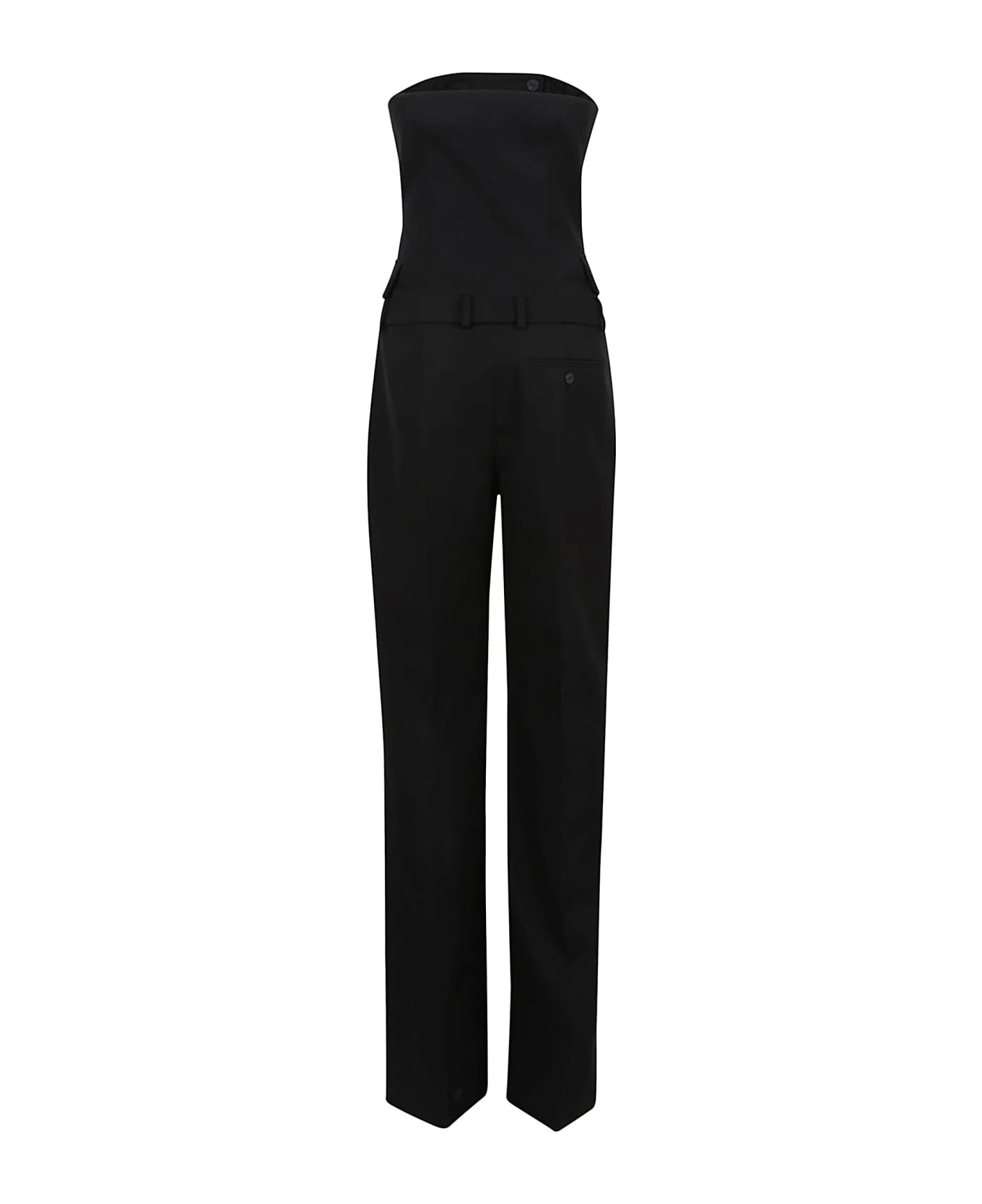 Tailored all in one in barathea wool BY ALEXANDER MCQUEEN. Button closure on the front; two side flap pockets; bustier with integrated stays.