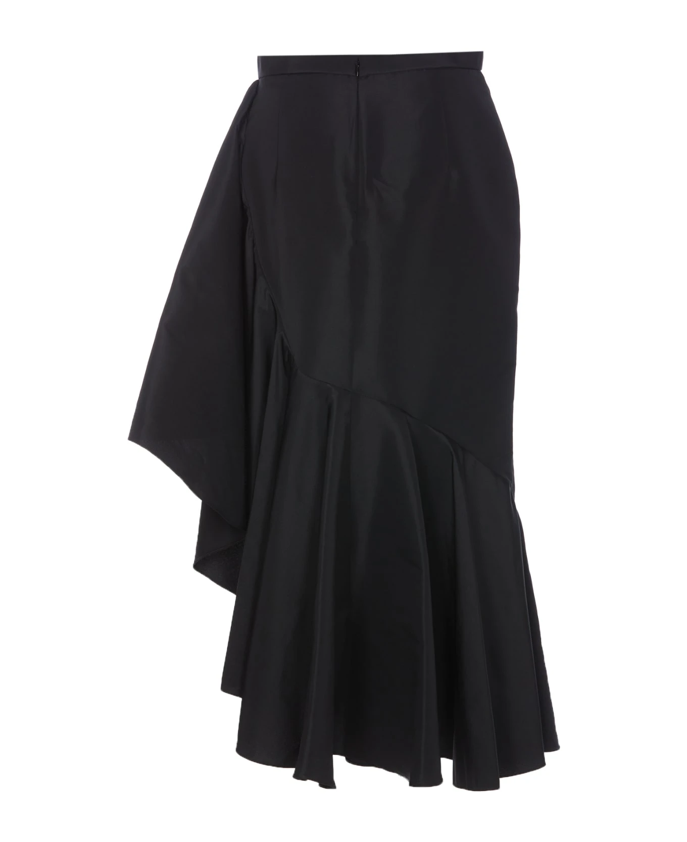 Alexander Mcqueen black asymmetrical midi skirt with zip closure on the back, high waist