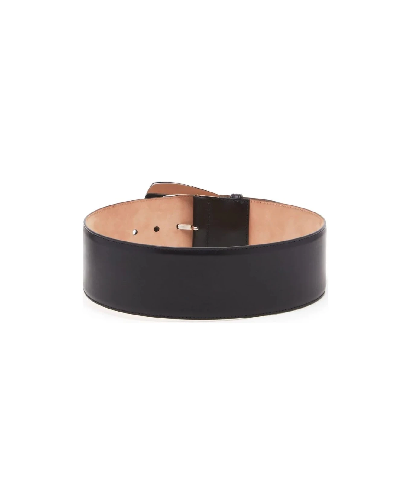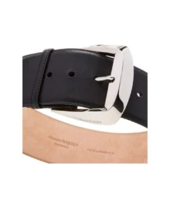 Alexander McQueen belt made of black leather with Geometric metal buckle in antique silver finish. Eco brass metal accessories. Width: 65 mm.