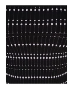 Alexander McQueen short sheath dress in black knit with bare shoulders, straight neckline, short sleeves and contrasting inlay in white nylon-cotton yarn. Concealed side zip fastening.