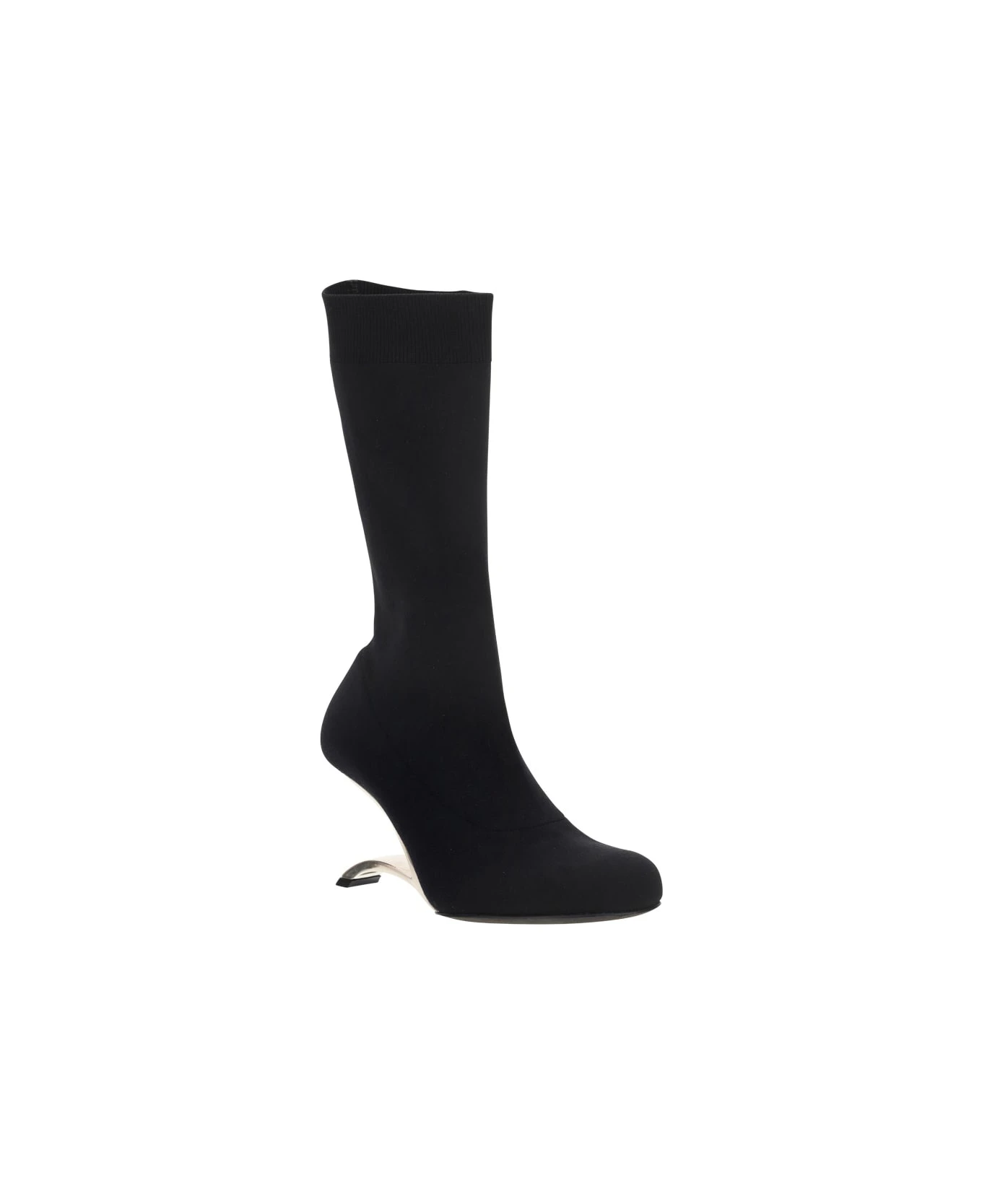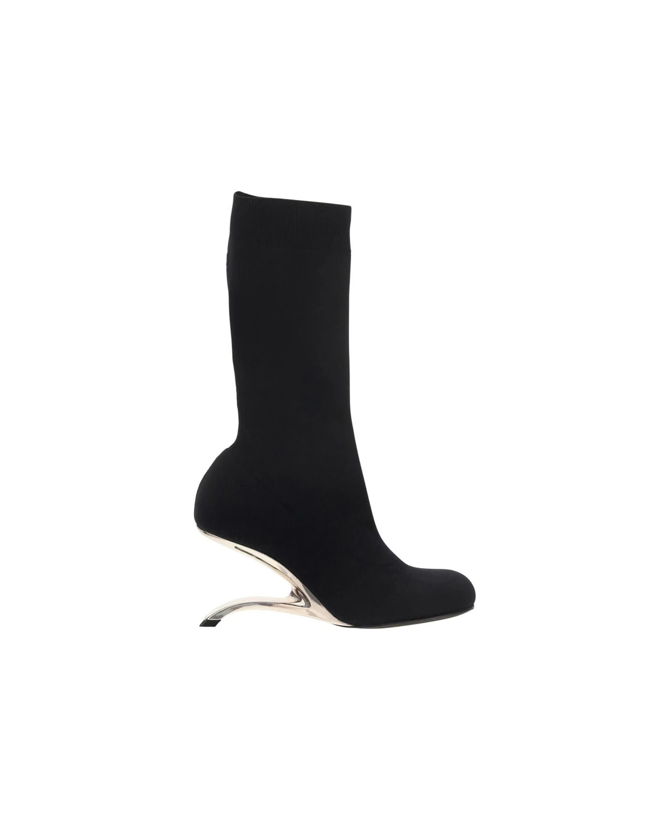 Fabri boots from alexander mcqueen, sock design, elongated toe, metallic-effect structured geometric heel.