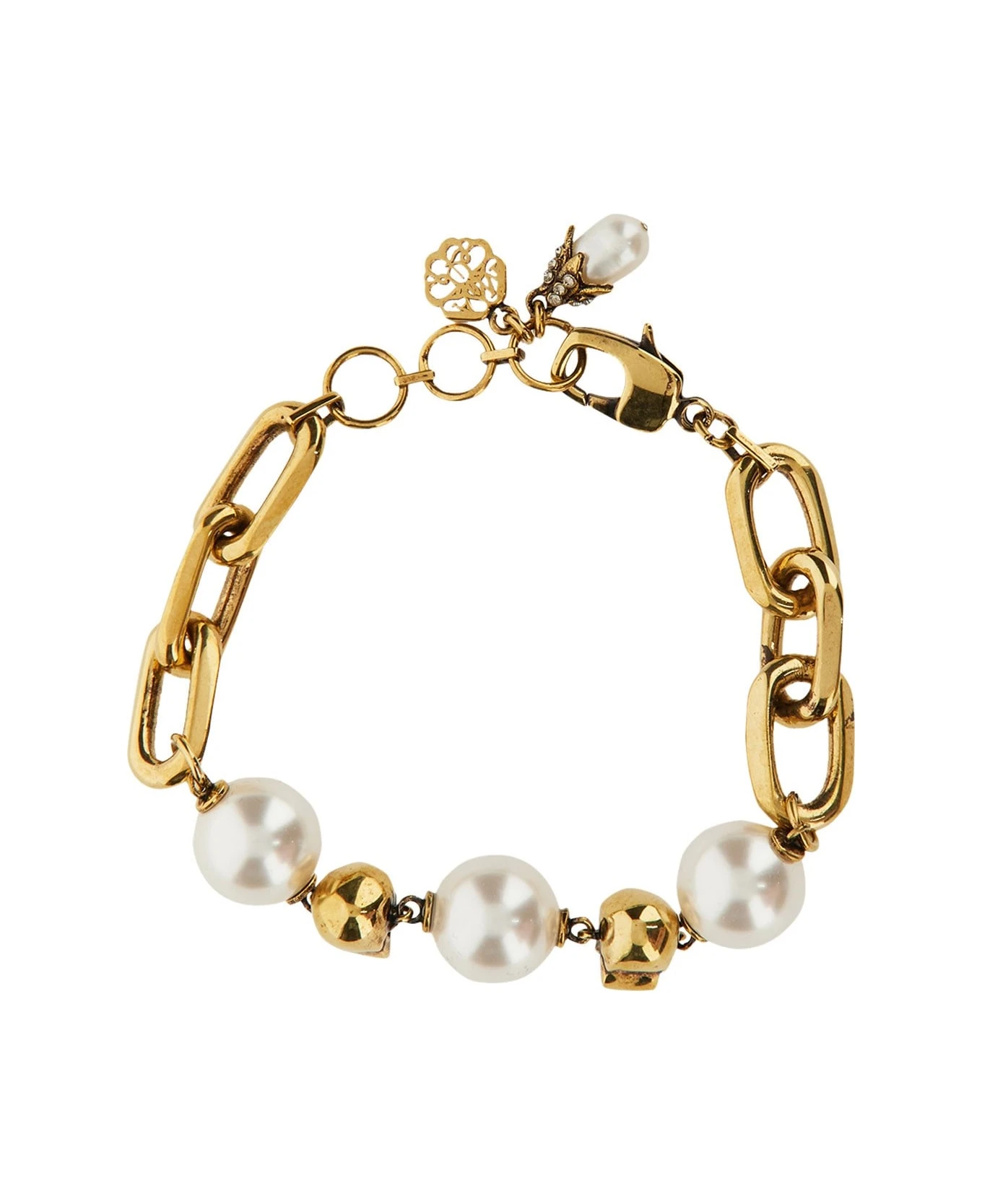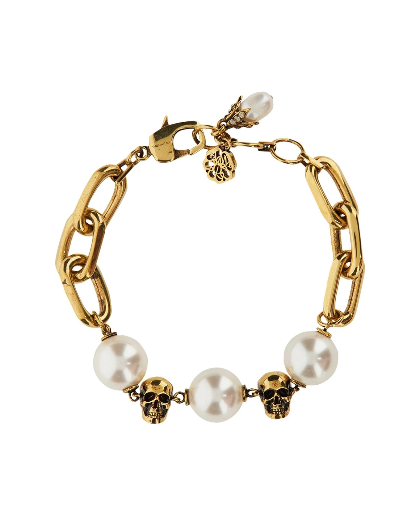 – Antique Gold Finish Chain- Swarovski Skulls- Pearl And Metal Effect- Adjustable Length- Brass Metal Accessories- 100% Brass- Made In Italy
