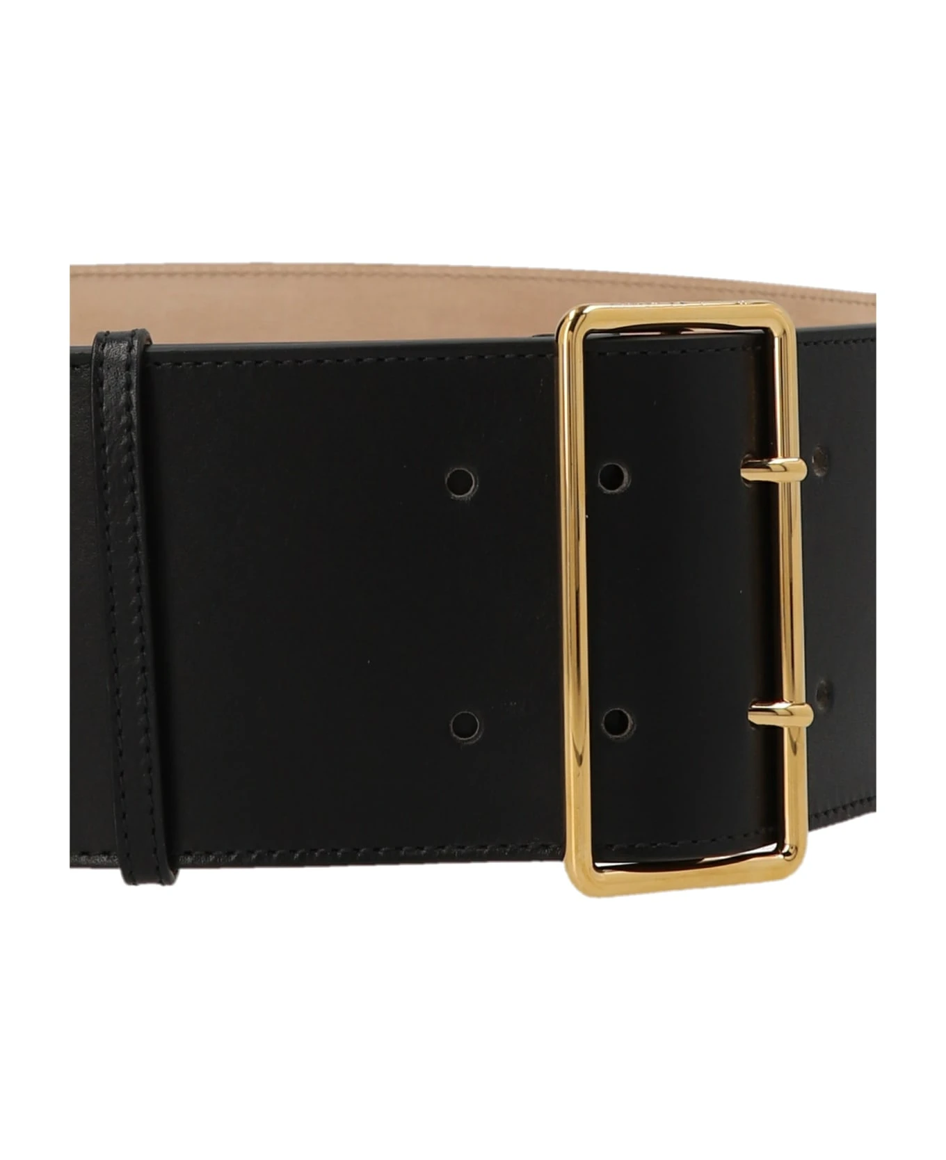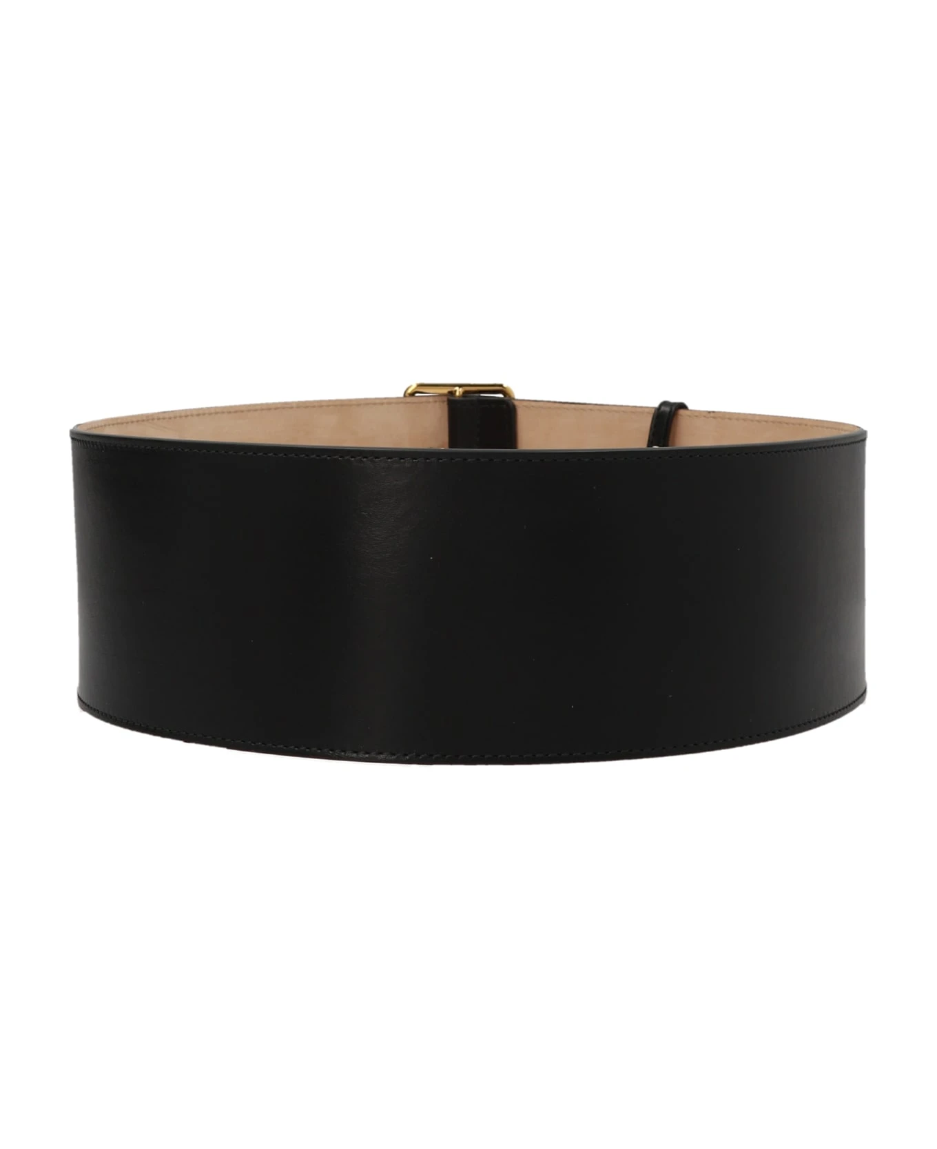 Cintura ‘Military’ in pelle, alta con fibbia metallica oro sottile.
