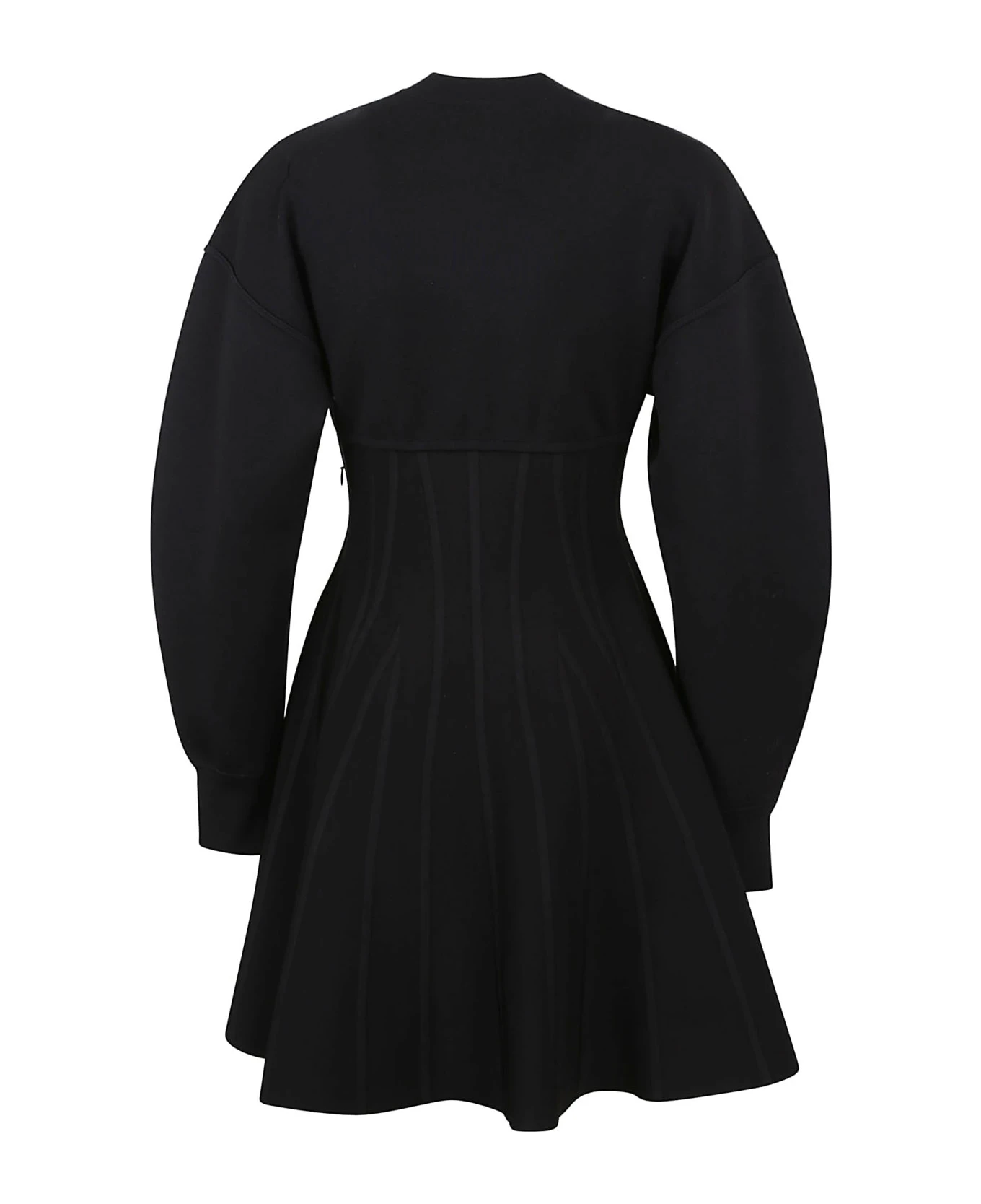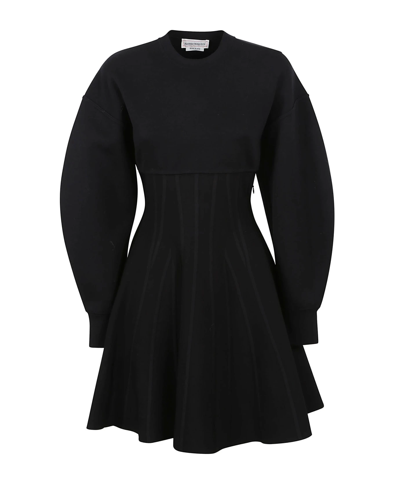 Wool blend dress BY ALEXANDER MCQUEEN. Crew neck; long, balloon sleeves with dropped shoulders.
