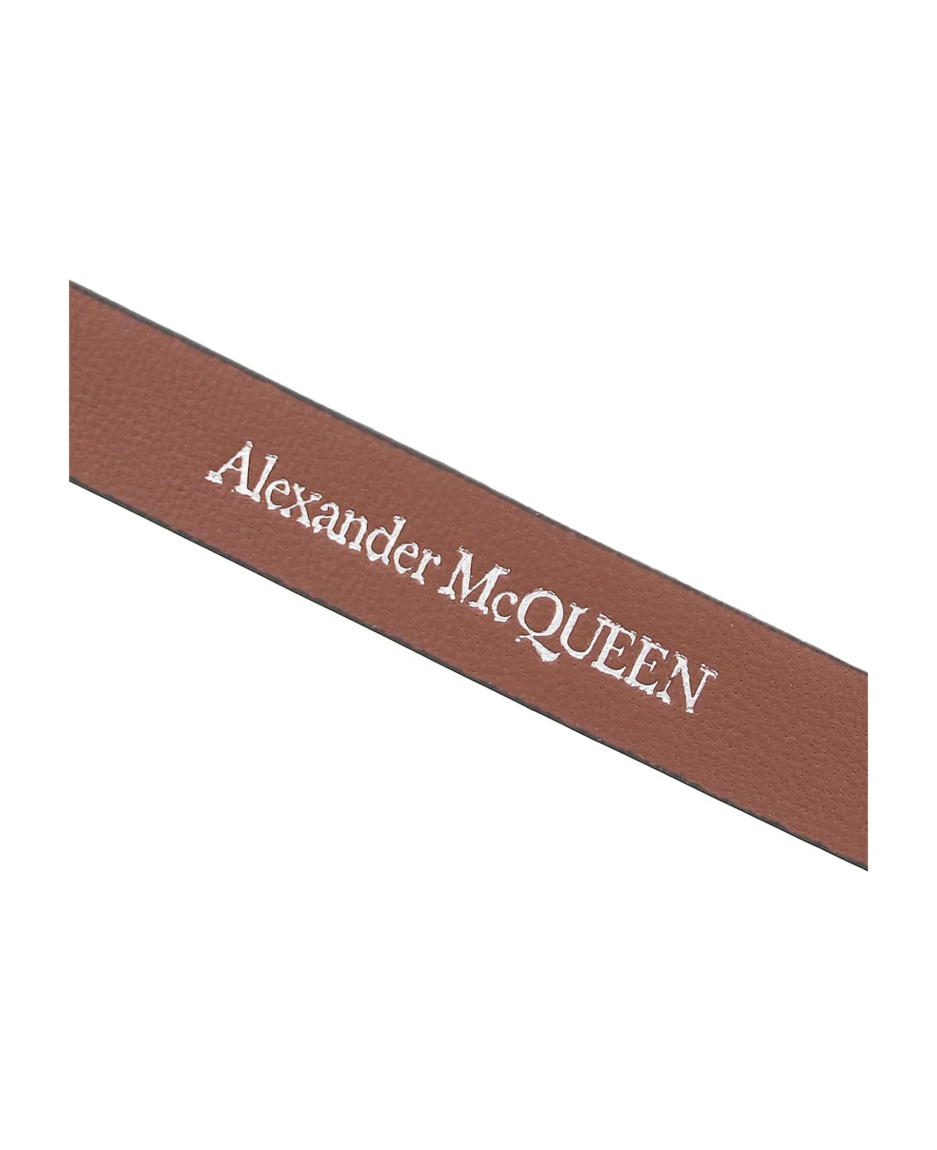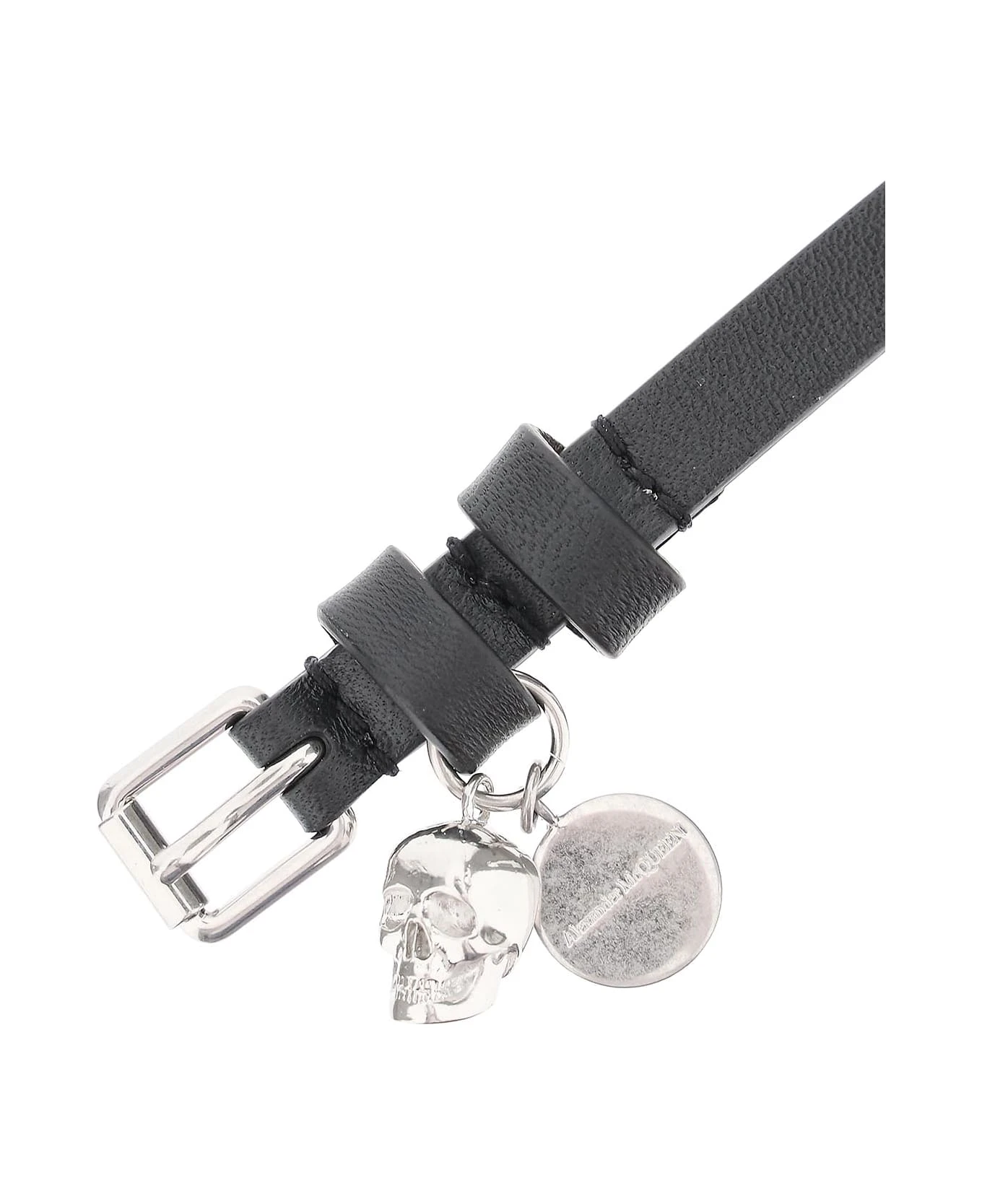 Alexander McQueen double wrap leather bracelet, featuring adjustable buckle closure, iconic Skull charm and little logo medal. Silver-tone metal parts.