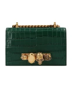 ‘Mini Jewelled Satchel’ shoulder bag with button closure, ‘Skull’ logo and chain shoulder strap.