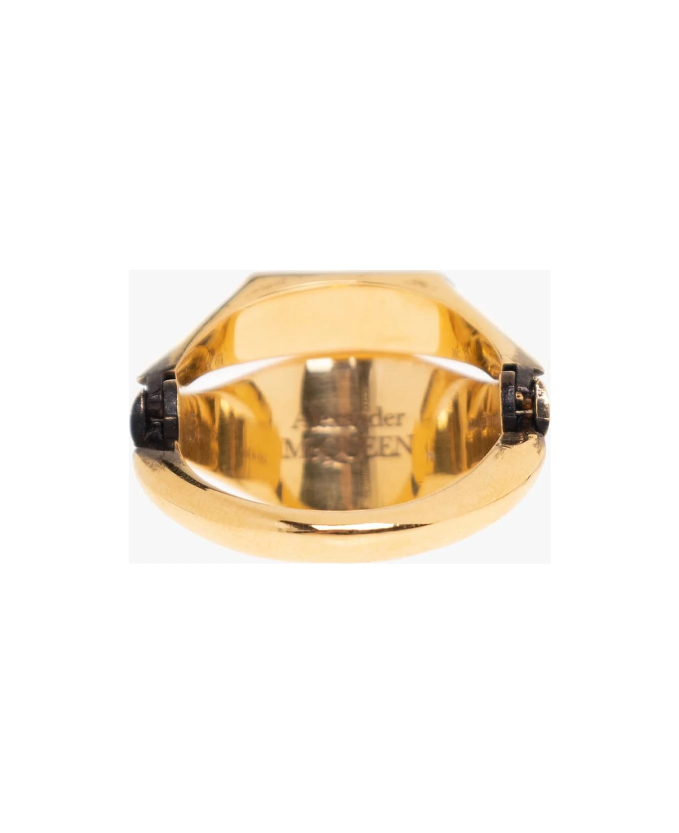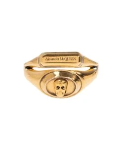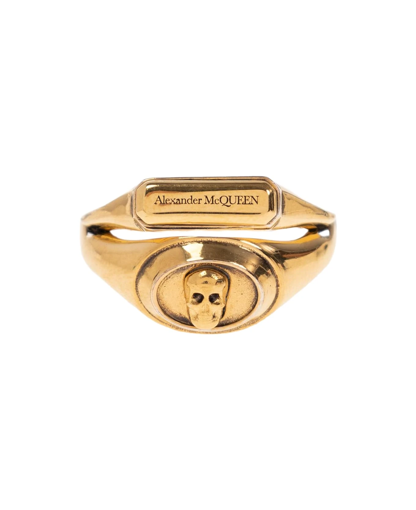 Gold-tone ring from Alexander McQueen. Made of brass, this item showcases an engraved logo and the brand’s signature skull application.