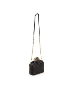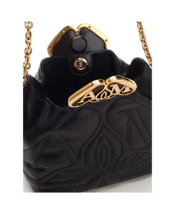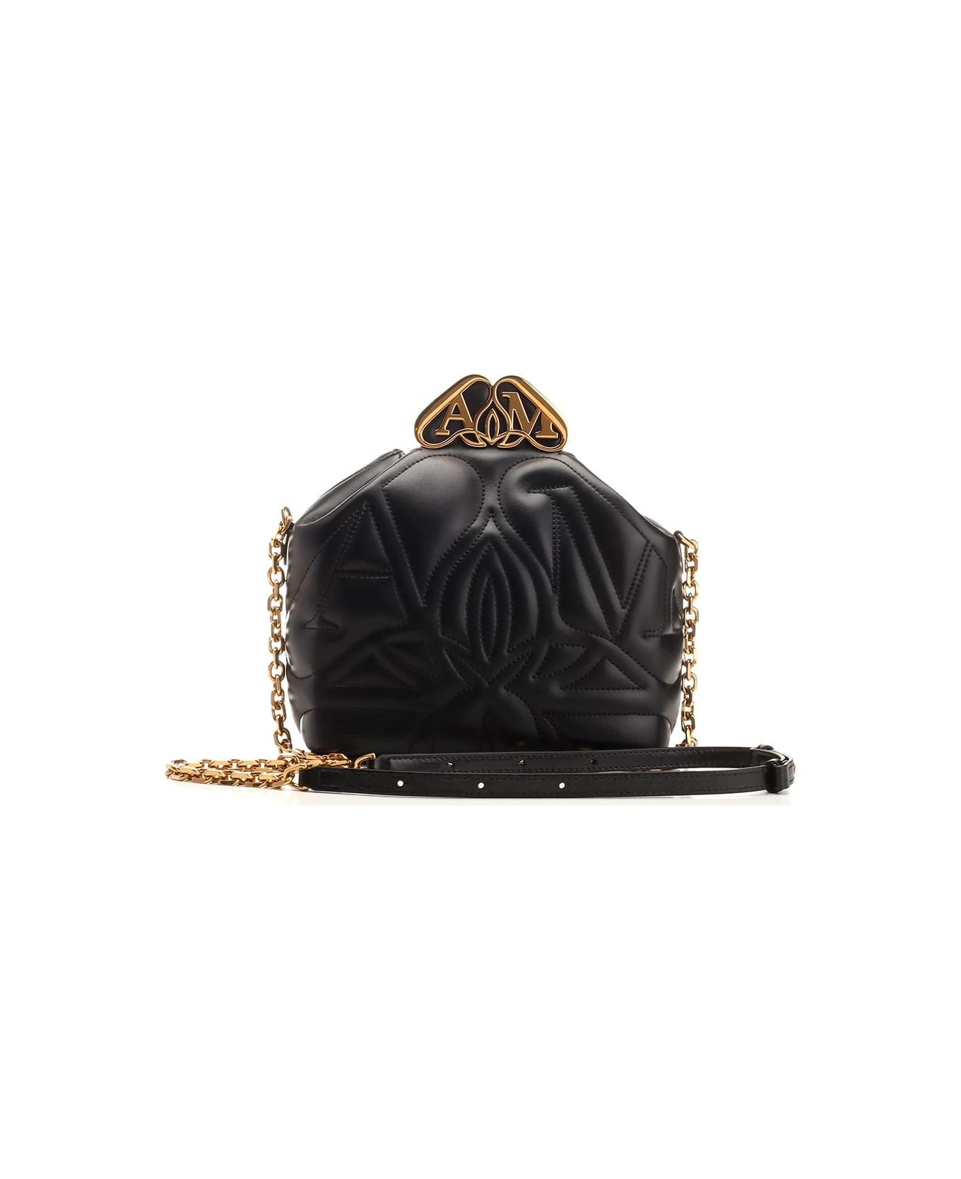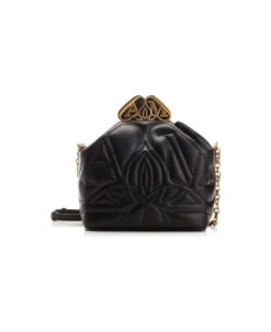 “Seal” bag from Alexander McQueen, made of padded lambskin, with oversized Seal logo and snap closure, antique gold hardware, detachable and adjustable shoulder strap.