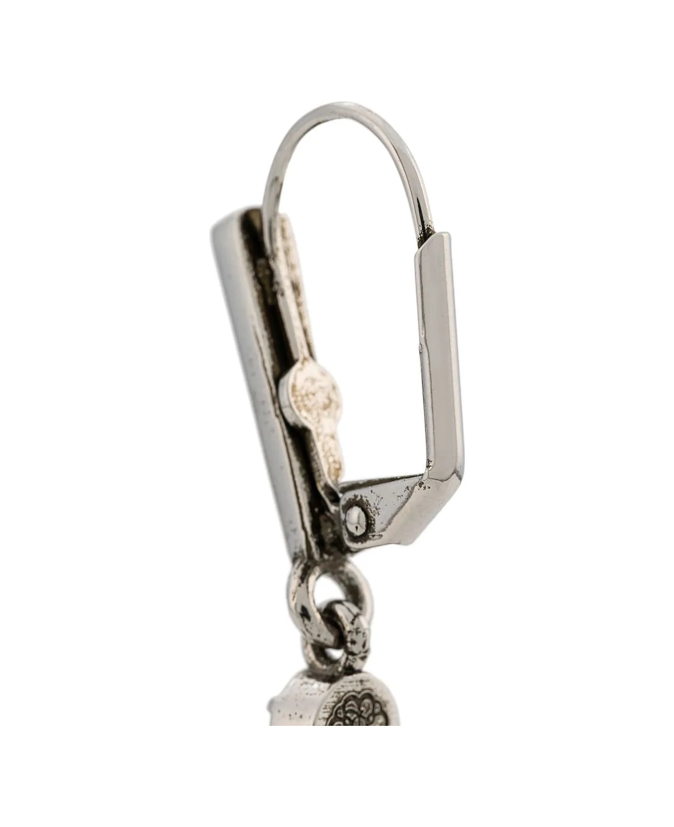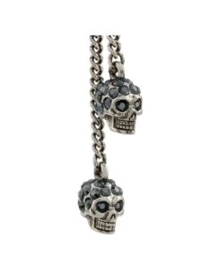 Skull chain earrings by Alexander McQueen made of brass with a silver finish and embellished with a double chain pendant with Swarovski-adorned skulls and a lever cap. Paired earrings.