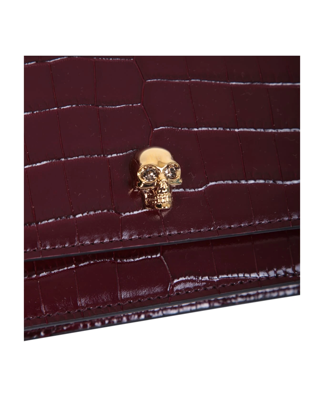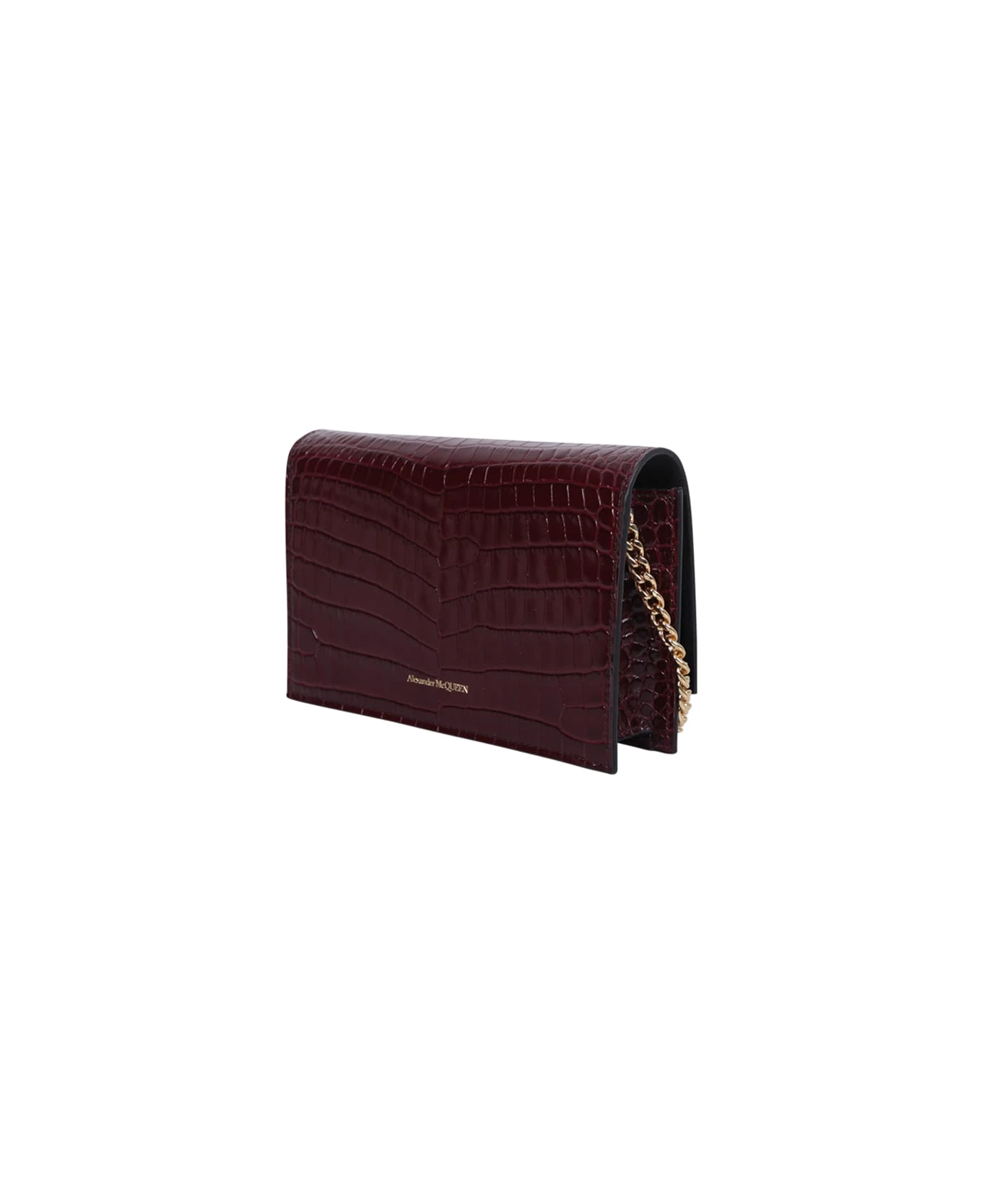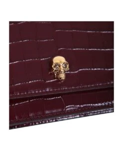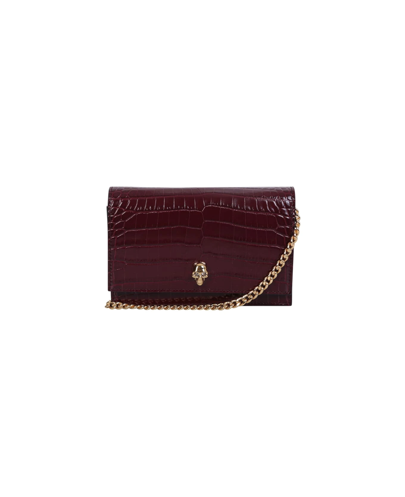 Crocodile motif. Skull charm. Main compartment. Internal slip pocket. Magnetic fastening. Chain-link shoulder strap. Gold-tone hardware. Color: bordeaux