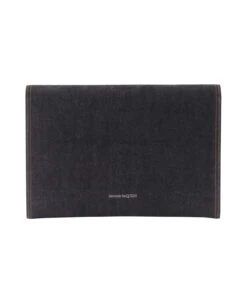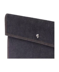 Alexander Mcqueen denim blue Skull pouch, logo on front, stitching profiles, clip closure, two inner slots