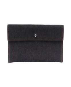 Alexander Mcqueen denim blue Skull pouch, logo on front, stitching profiles, clip closure, two inner slots