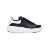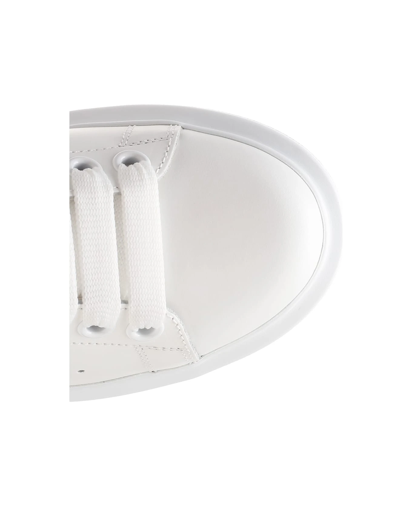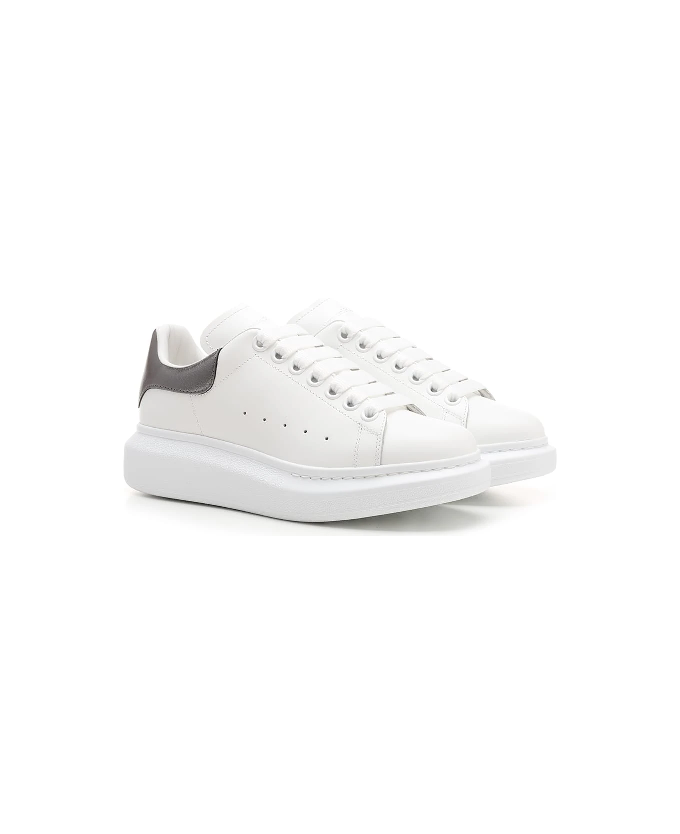 Oversize sneakers from Alexander McQueen in white leather with silver laminated heel, chunky shaped sole in white rubber and thick laces.