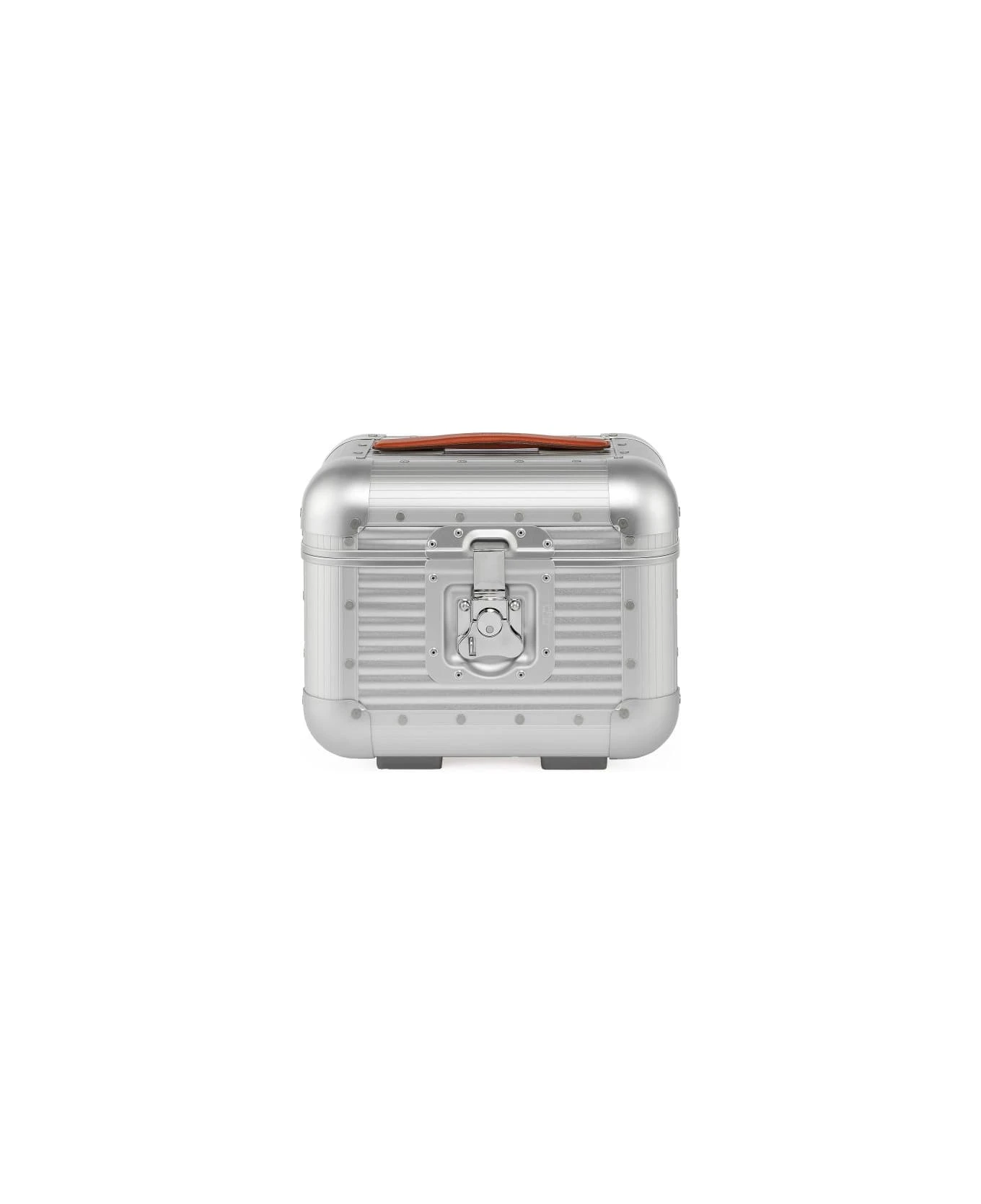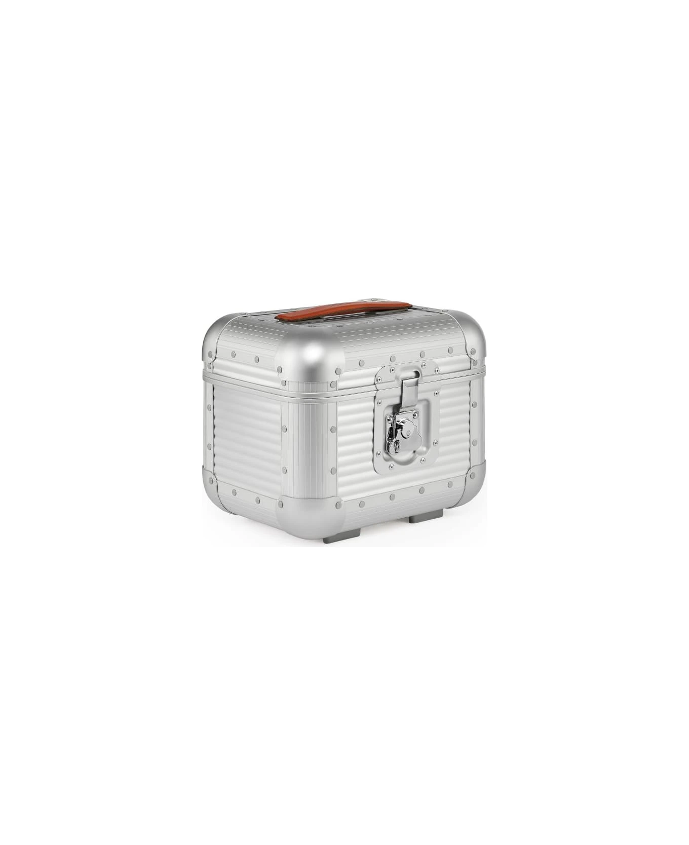 Vanity – 100% Aluminum. Vanity case made in Italy. Handcrafted Leather details include the top handle and the internal details. The interior organizer is enrichened by adjustable leather straps and removable cases that allow for an optimum arrangement of contents.