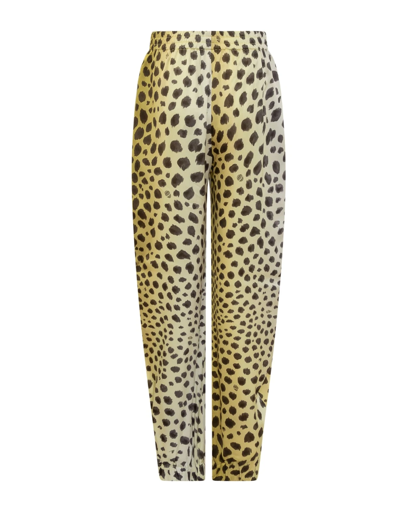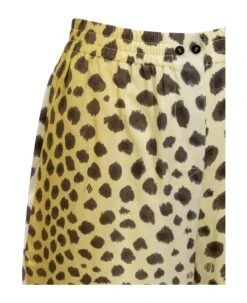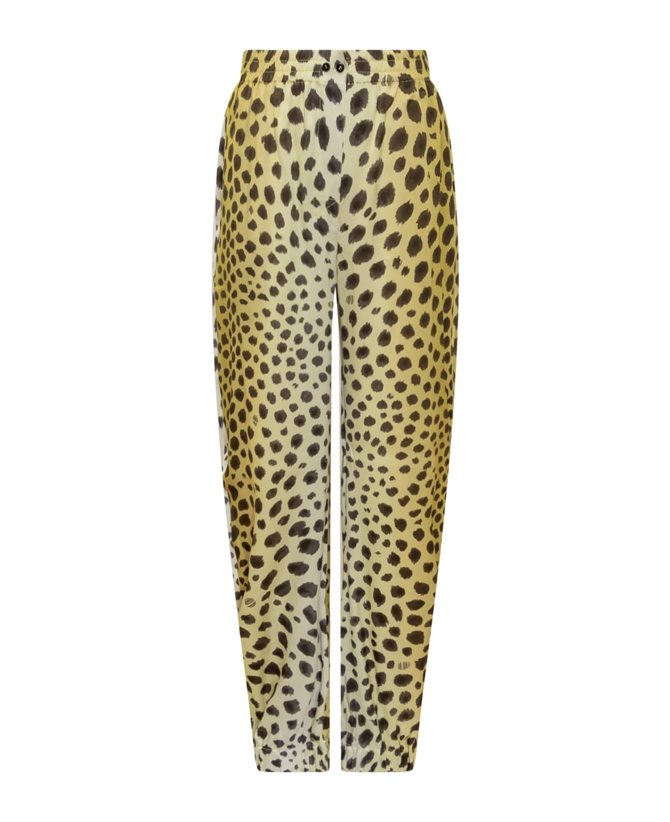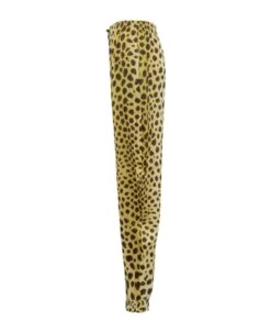 Long trousers wide leg. Closure with buttons. Two side pockets. Animalier pattern in printed satin.
