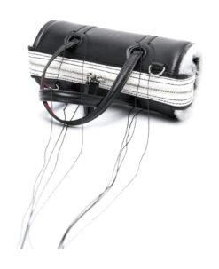 -Mini handbag made of a slightly shiny calf natural leather on the outside, and grainy soft bordeaux leather in the inside. With top handles and removable crossbody strap. Made to the fit a phone and wallet. Accented with exposed foam and long hanging threads.