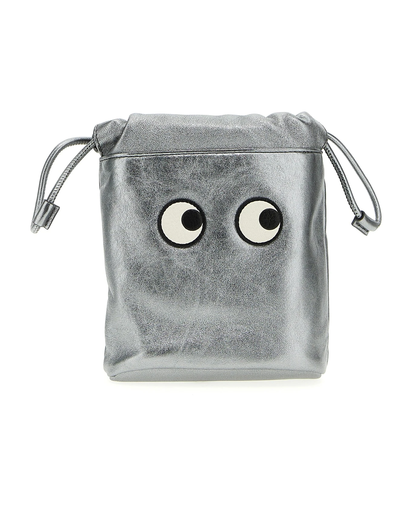 Metallic ‘Eyes’ pouch with front eye patch and a drawstring closure.