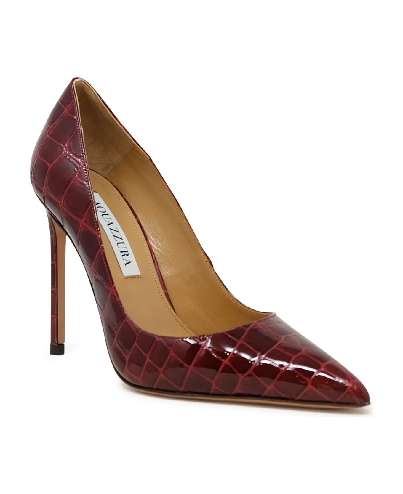 AQUAZZURA PURHIGP1-CCX-DKA PURIST PUMP 105, product code PURHIGP1-CCX-DKA, style name PURIST PUMP 105, color DARK AUBERGEUR, material COCO LUX, heel height 105 MM, season FW23