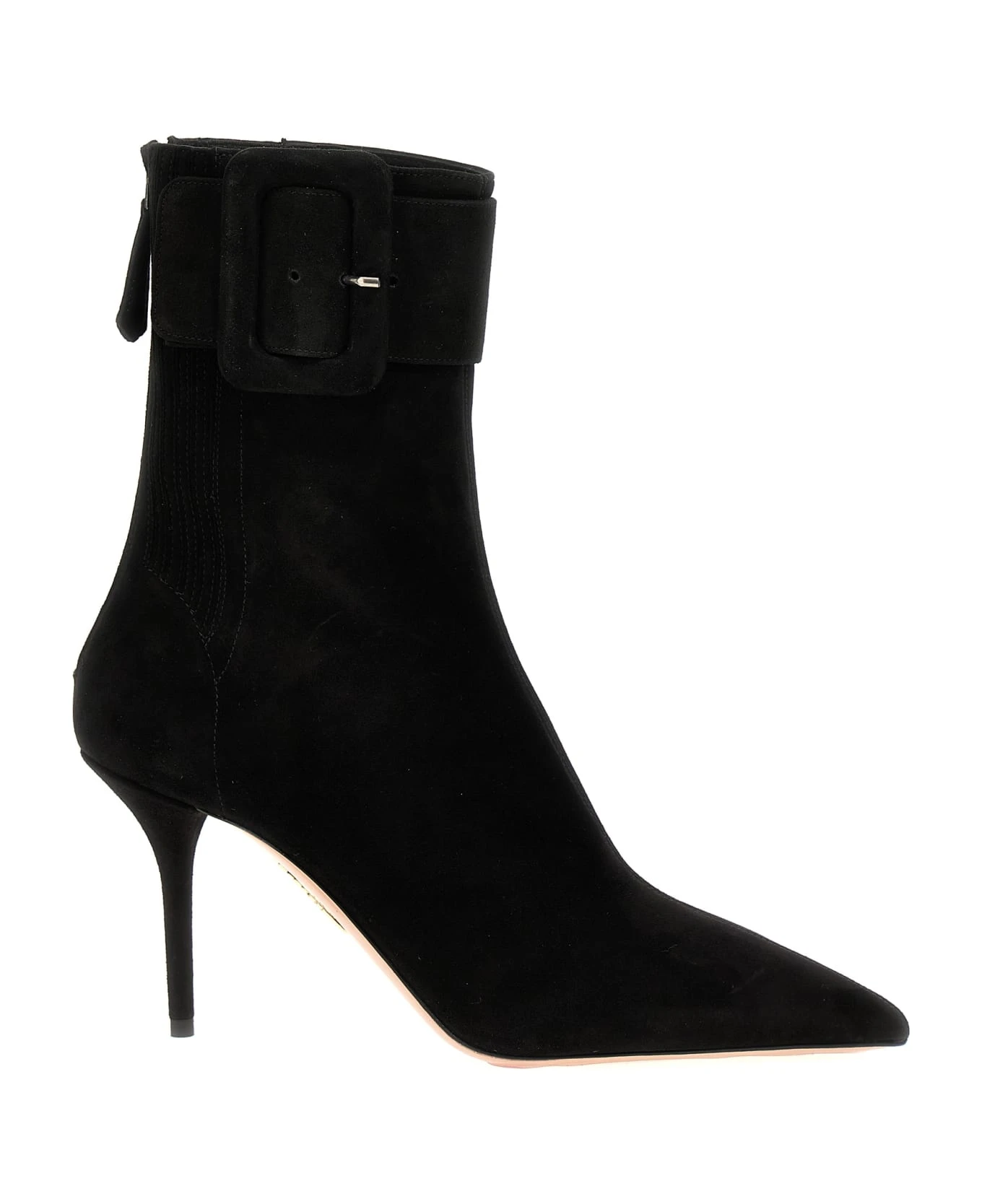‘St. HonorĂ©’ suede ankle boots with buckle detail, heel.