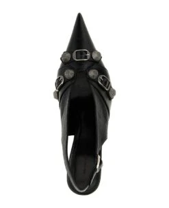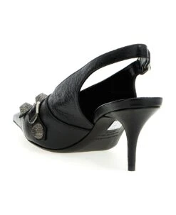 Cagole’ Arena lamb leather pumps with toe cap with studs and antiqued silver metal buckle and a with adjustable strap.