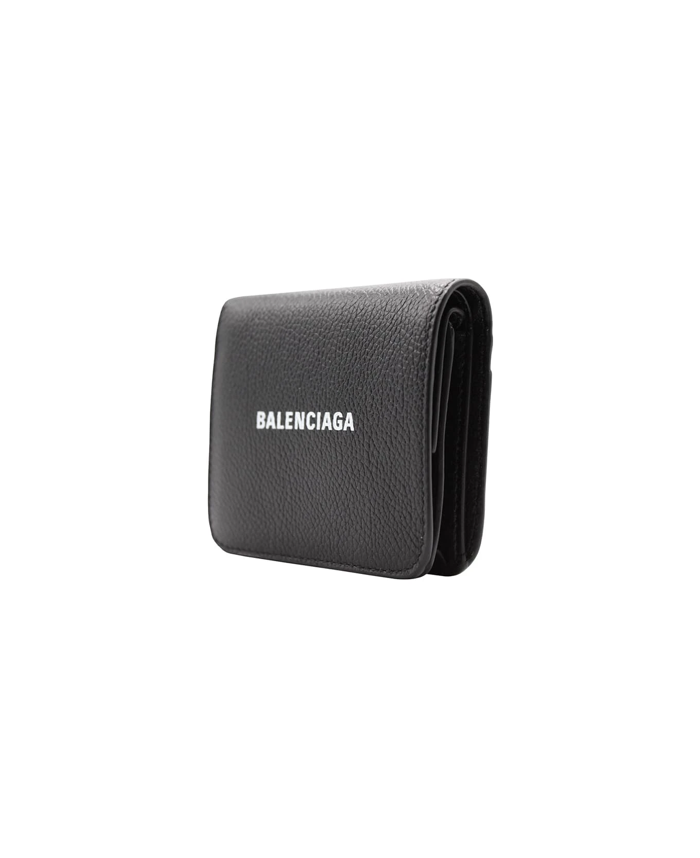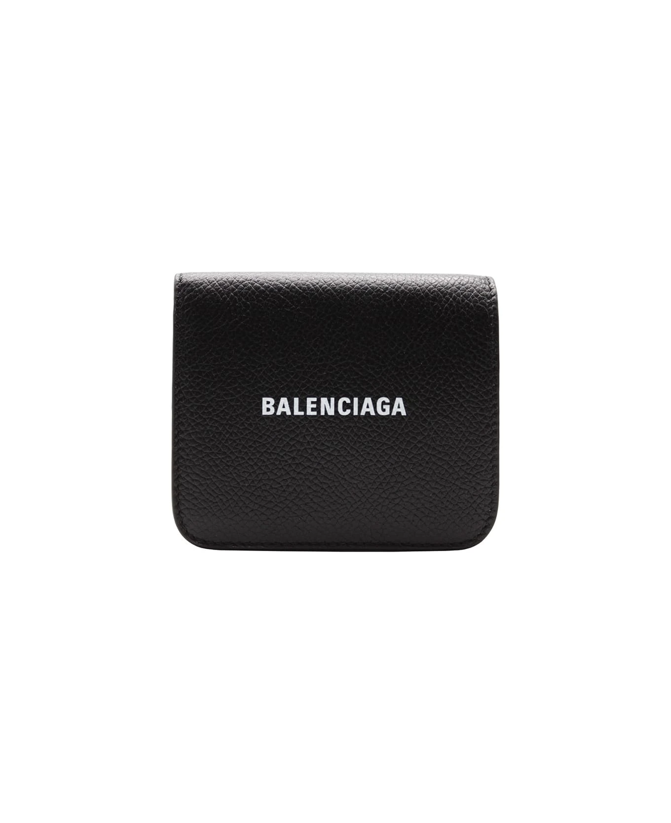 Balenciaga Cash Flap Coin And Card Holder in black and white grained calfskin
