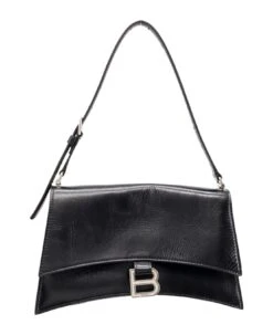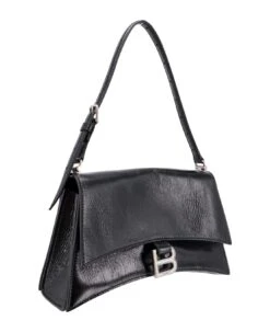 Leather shoulder bag with metal monogram