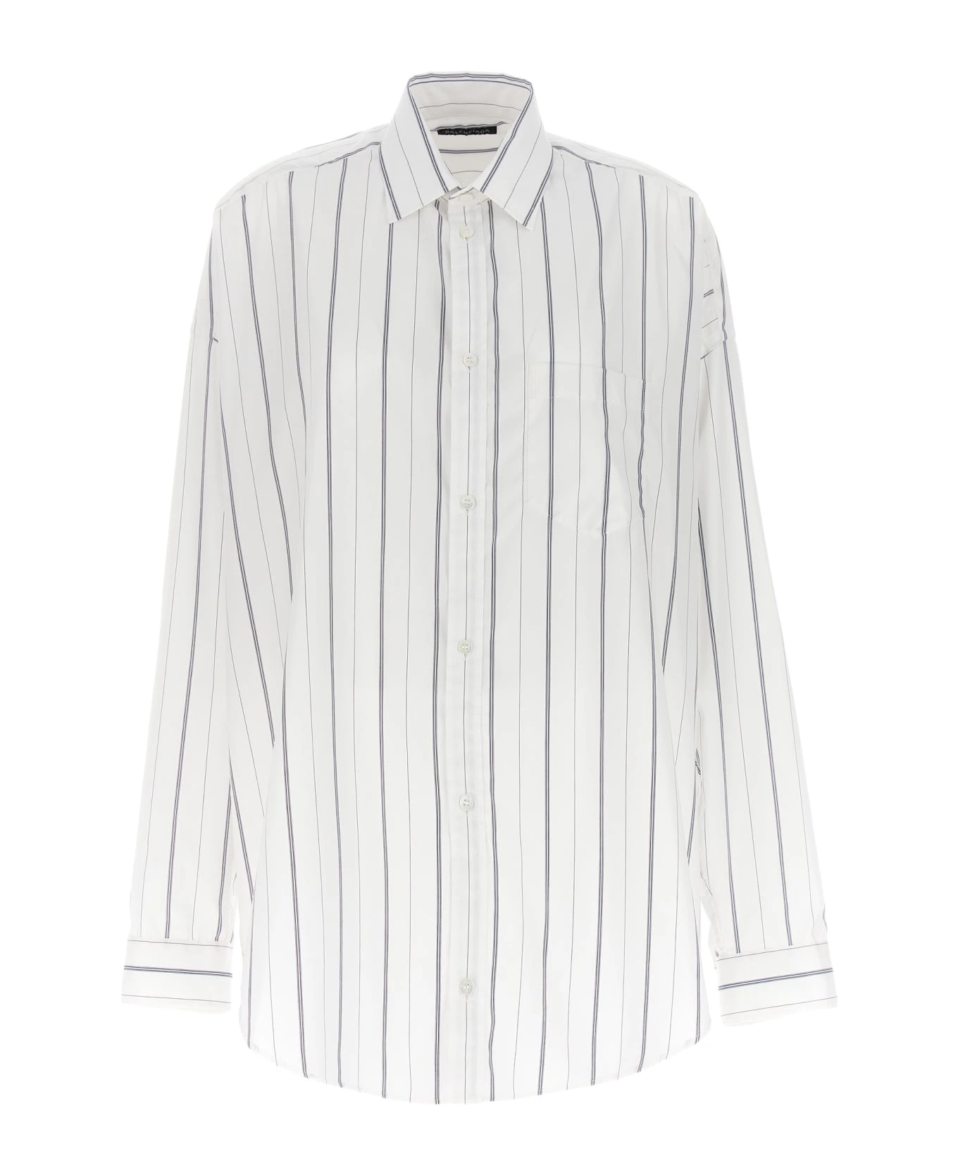 ‘Cashmere’ striped cotton blend shirt, with back logo print, a front pocket, a button closure, and long cuffed sleeves.