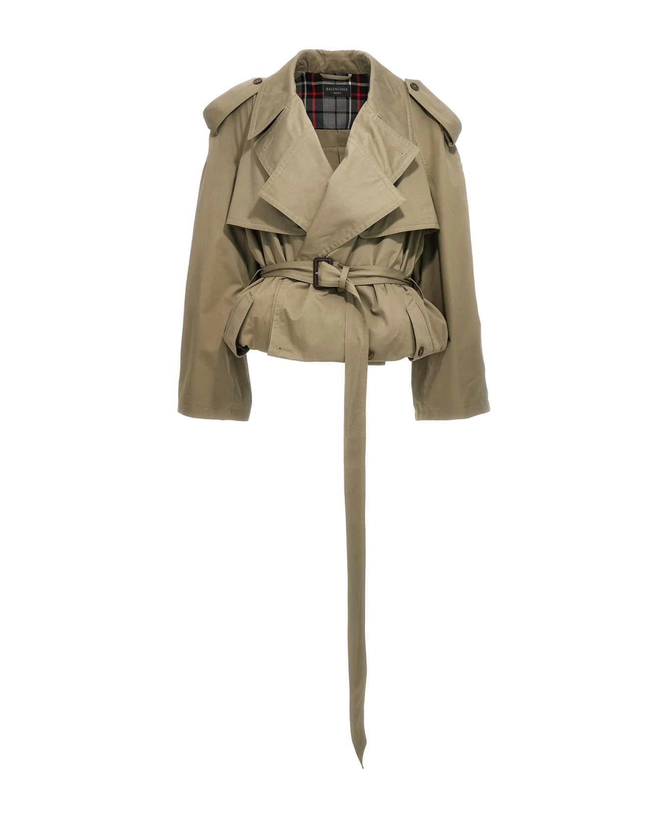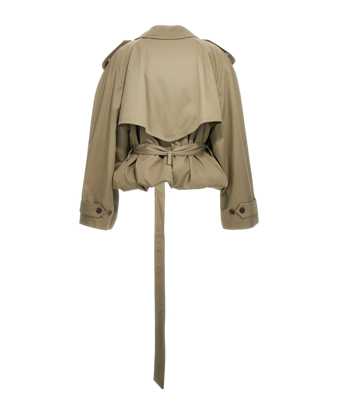 Folded’ double-breasted cotton trench coat with button closure, belt at the waist, pockets and long sleeves.