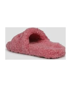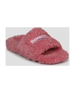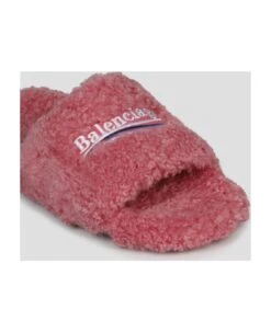Balenciaga, faux shearling sandals with Balenciaga Political Campaign logo embroidered on the front. – FW23