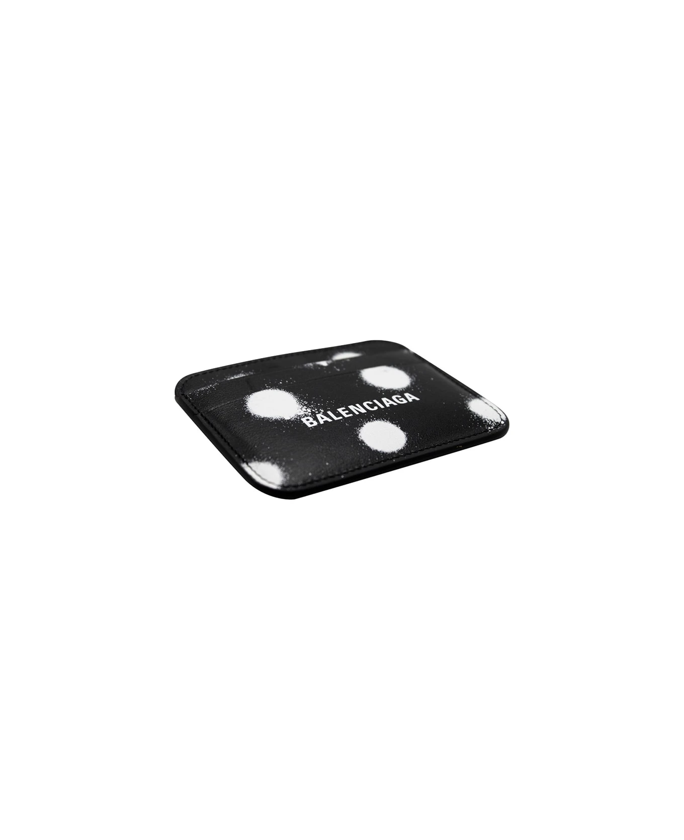 Balenciaga Mini card holder in black and white sprayed polka dots printed smooth calfskin.