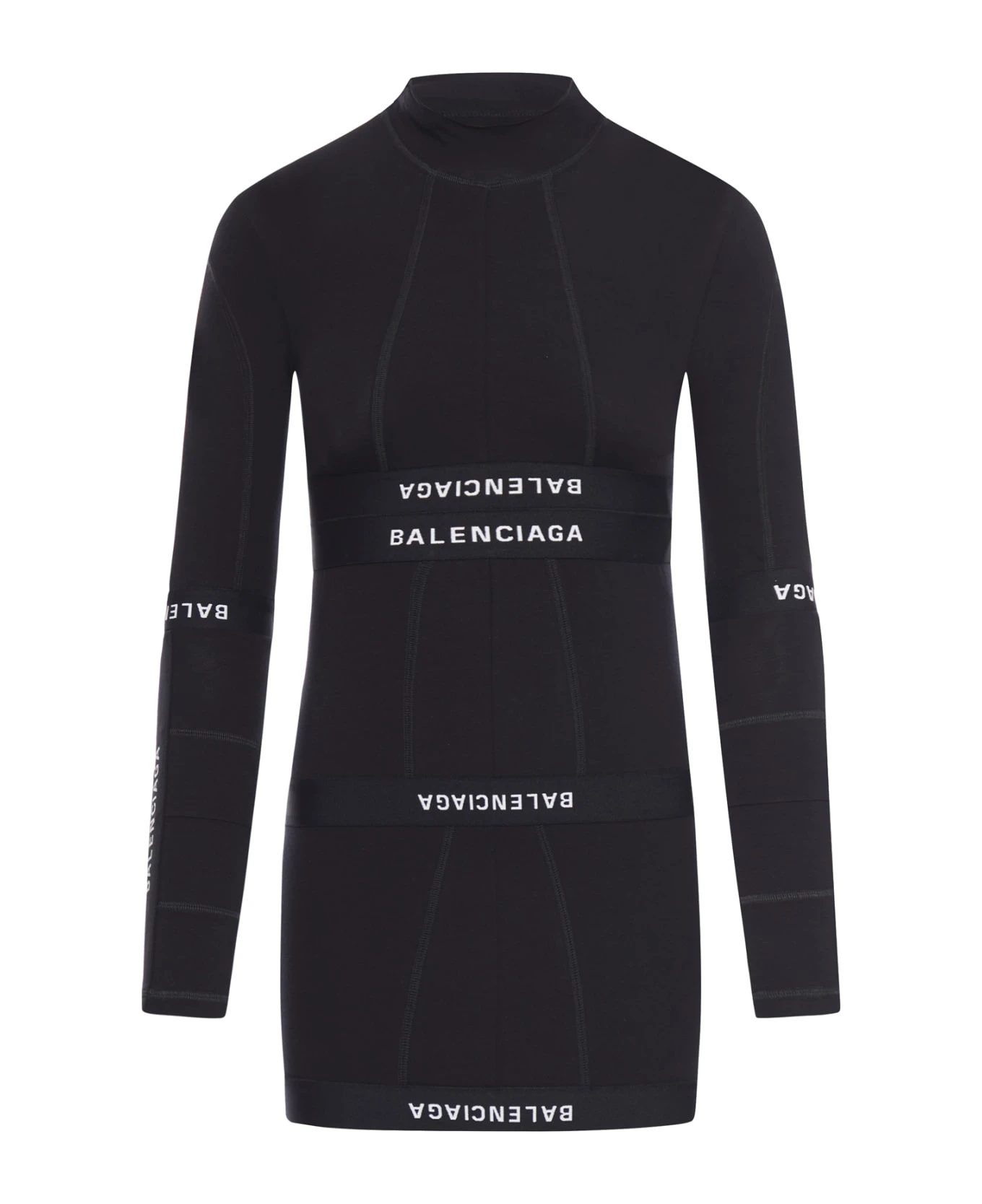 `Patch Brief` dress in stretch cotton with elastic detail with jacquard logo, high neck, and long sleeves.
