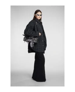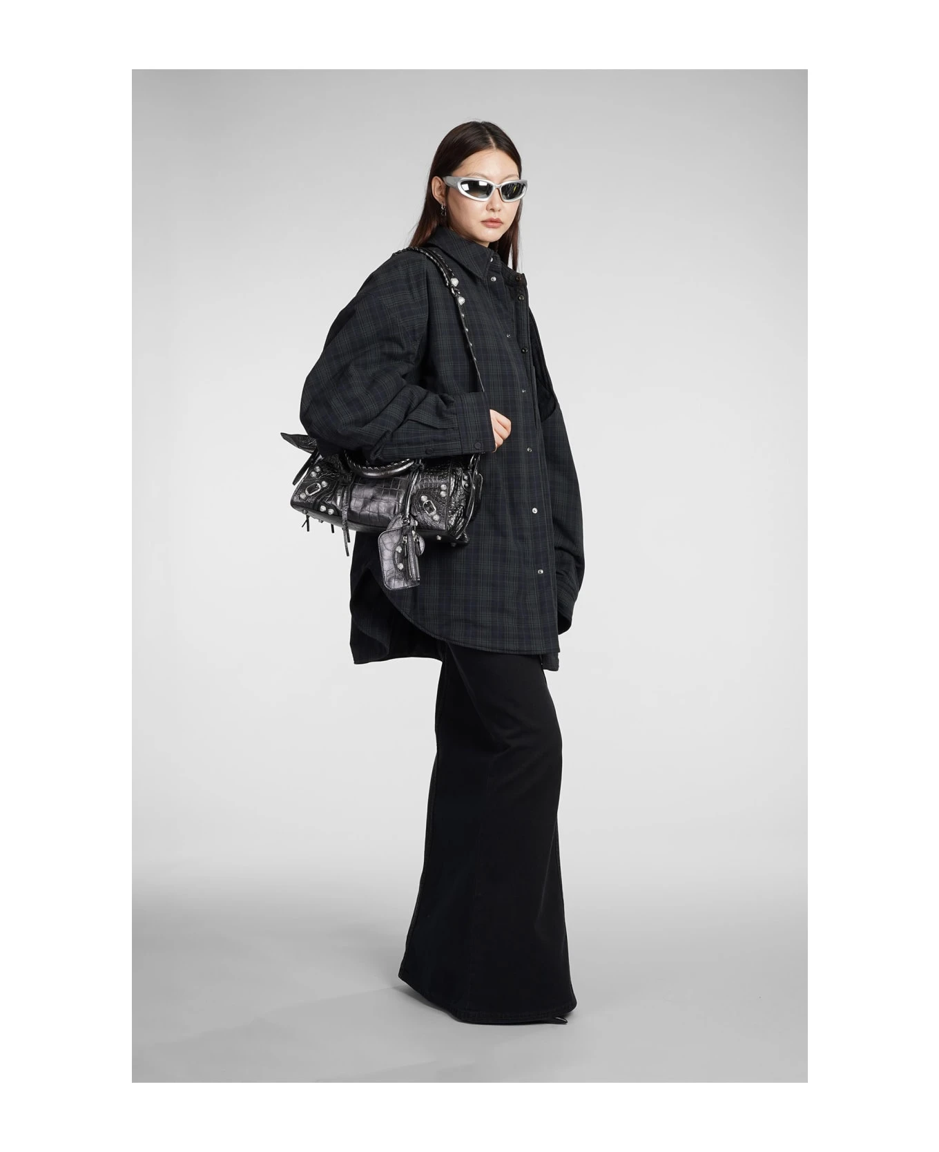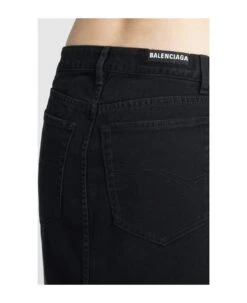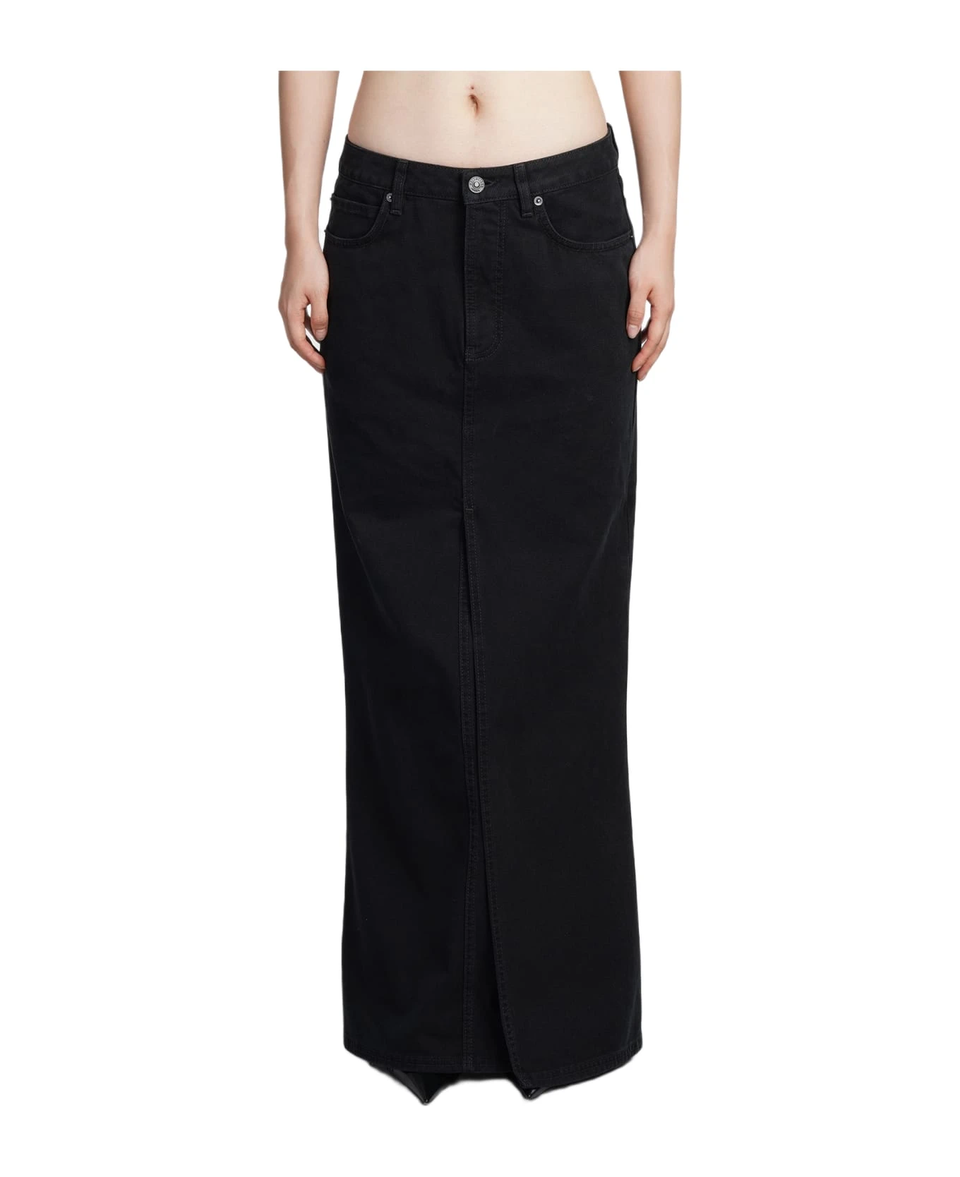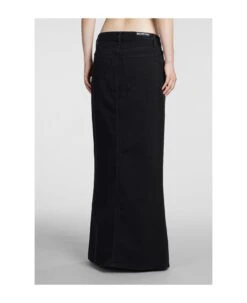 Skirt in black cotton, round neck, short sleeves, monogram print, neck button, long sleeves, 100% cotton, Made in Italy, Model is 180 cm and wears size XS