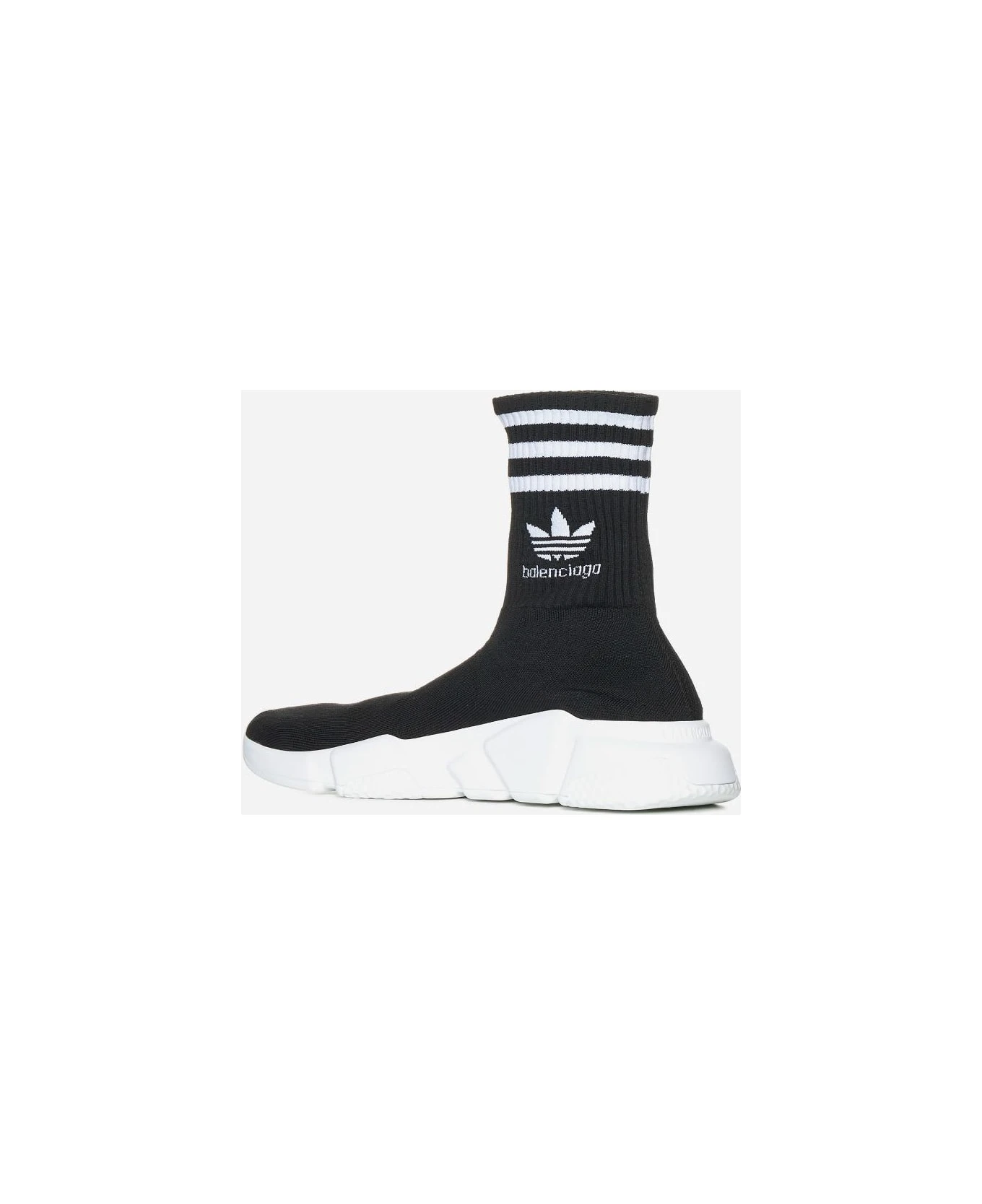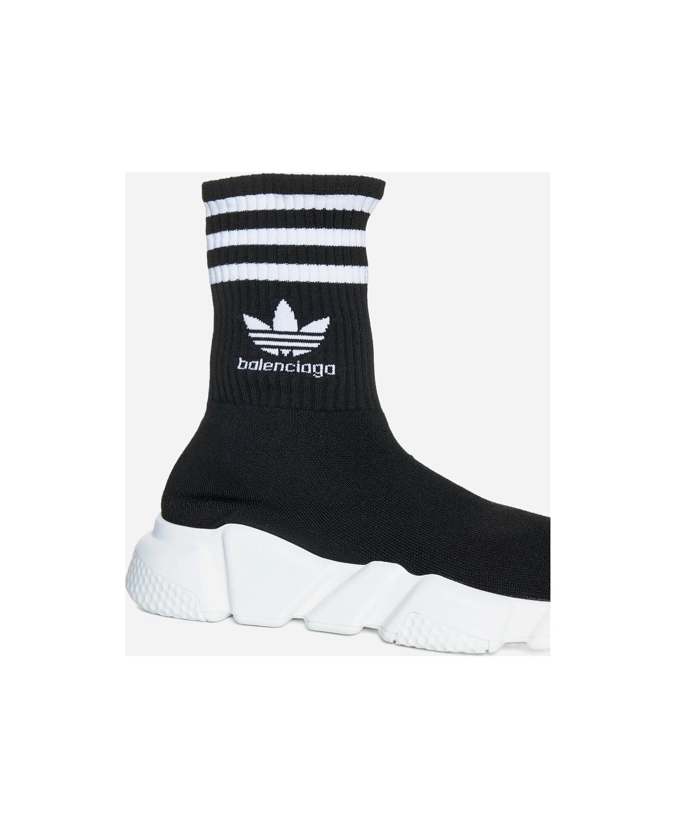 Balenciaga X Adidas’speed It Sneakers In Black Stretch Knit Featuring A Rounded Toe, White Double Logo And Stripes On The Ankle And Chunky Rubber Sole With Embossed Logo On The Back.