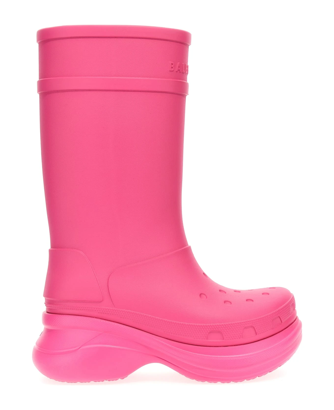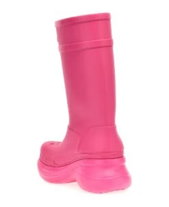 Balenciaga x Crocs rubber boots with oversized sole and embossed logo.