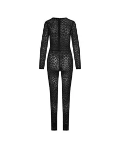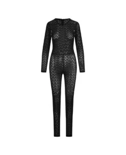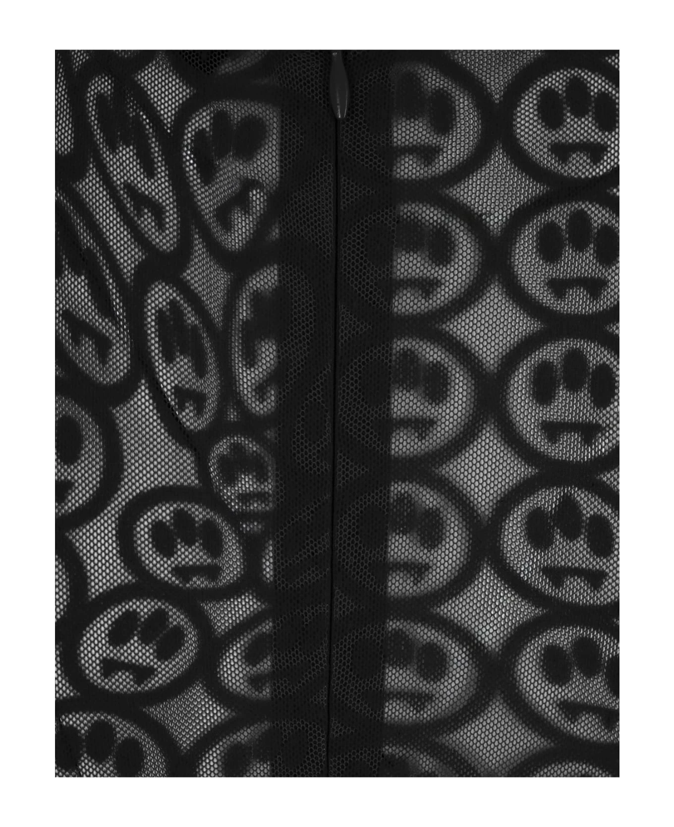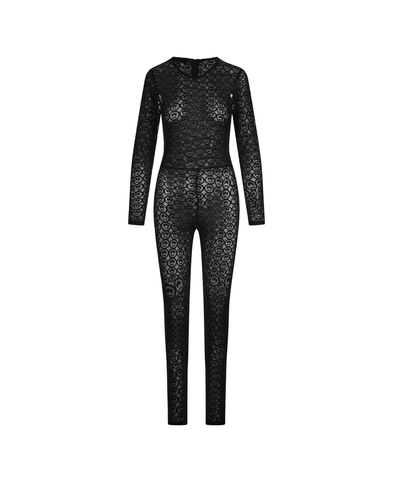 Barrow long jumpsuit made of black mesh with all-over velvet-effect logo pattern. The garment features a slim fit, a round neckline, long sleeves and a concealed fastening at the back.