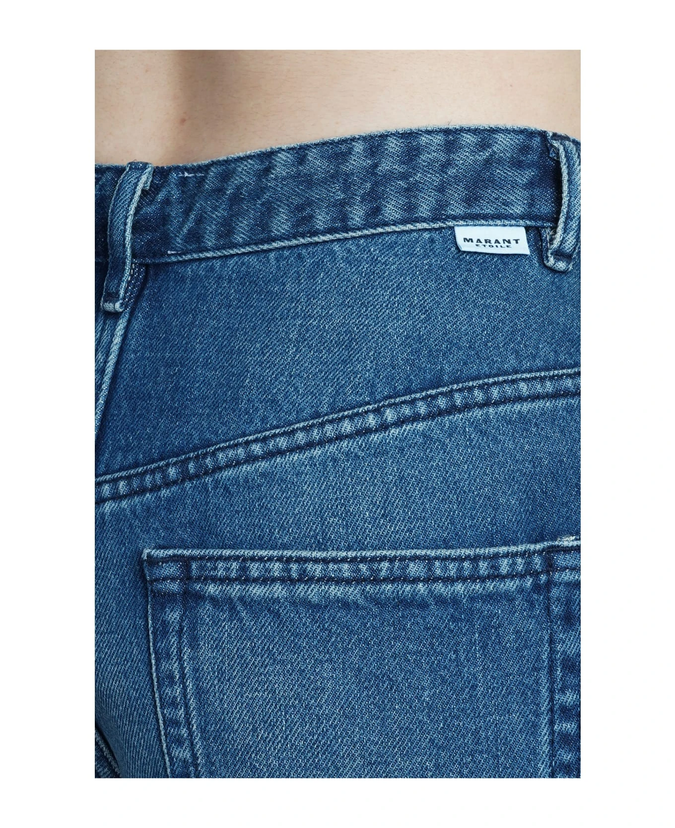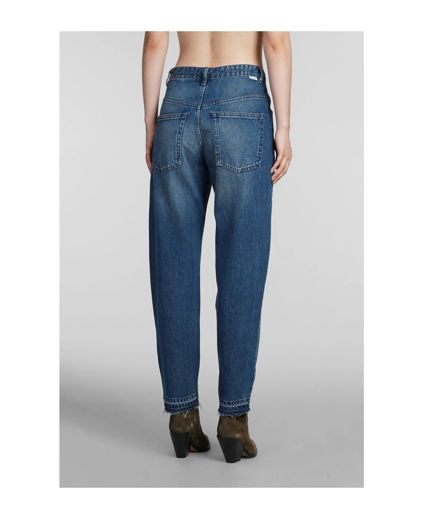 Belden Jeans in blue cotton, frontal buttons closure, belt loops, five pockets, rear logo label, 100% cotton, Made in Tunisia, Model is 180 cm and wears 36