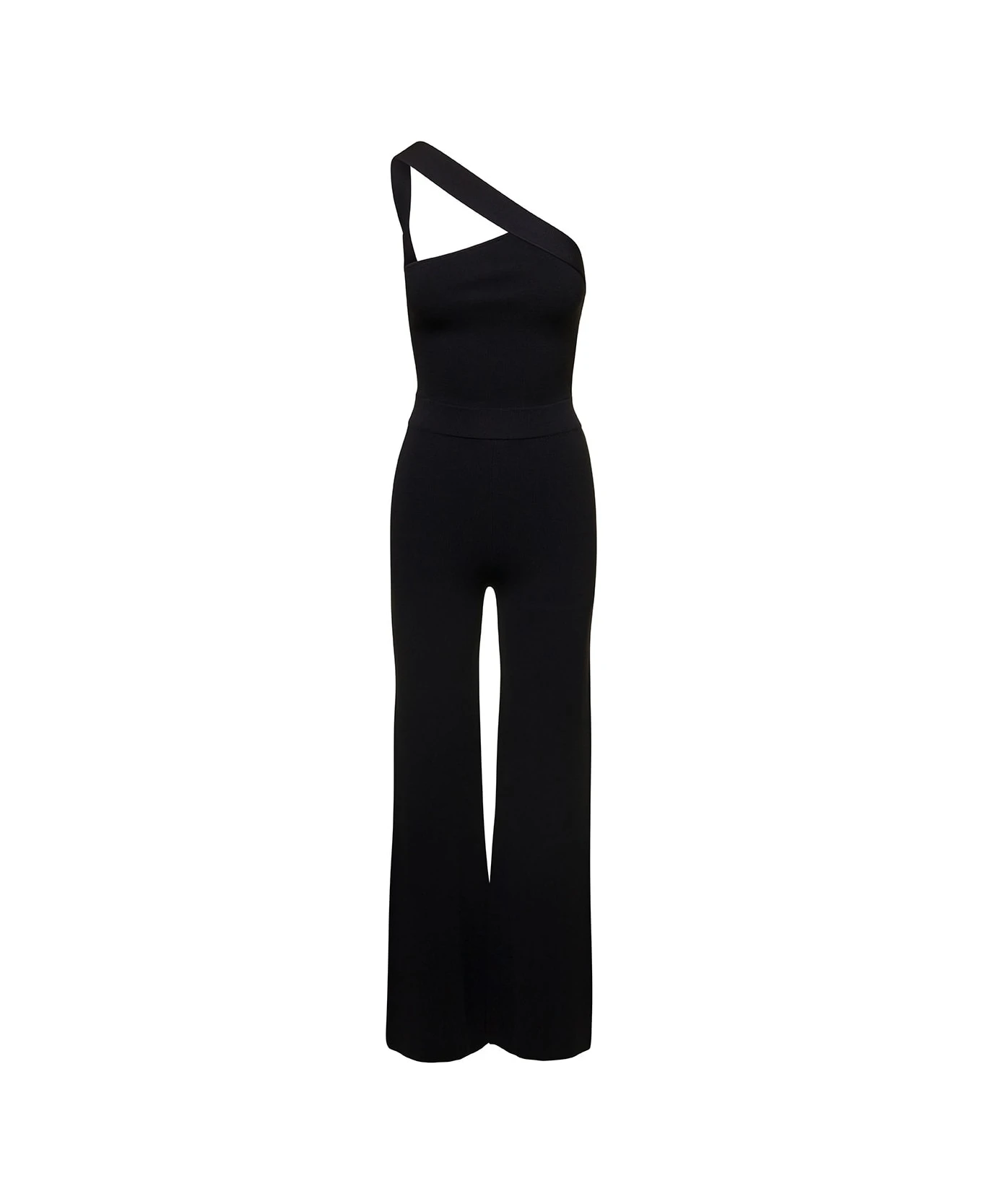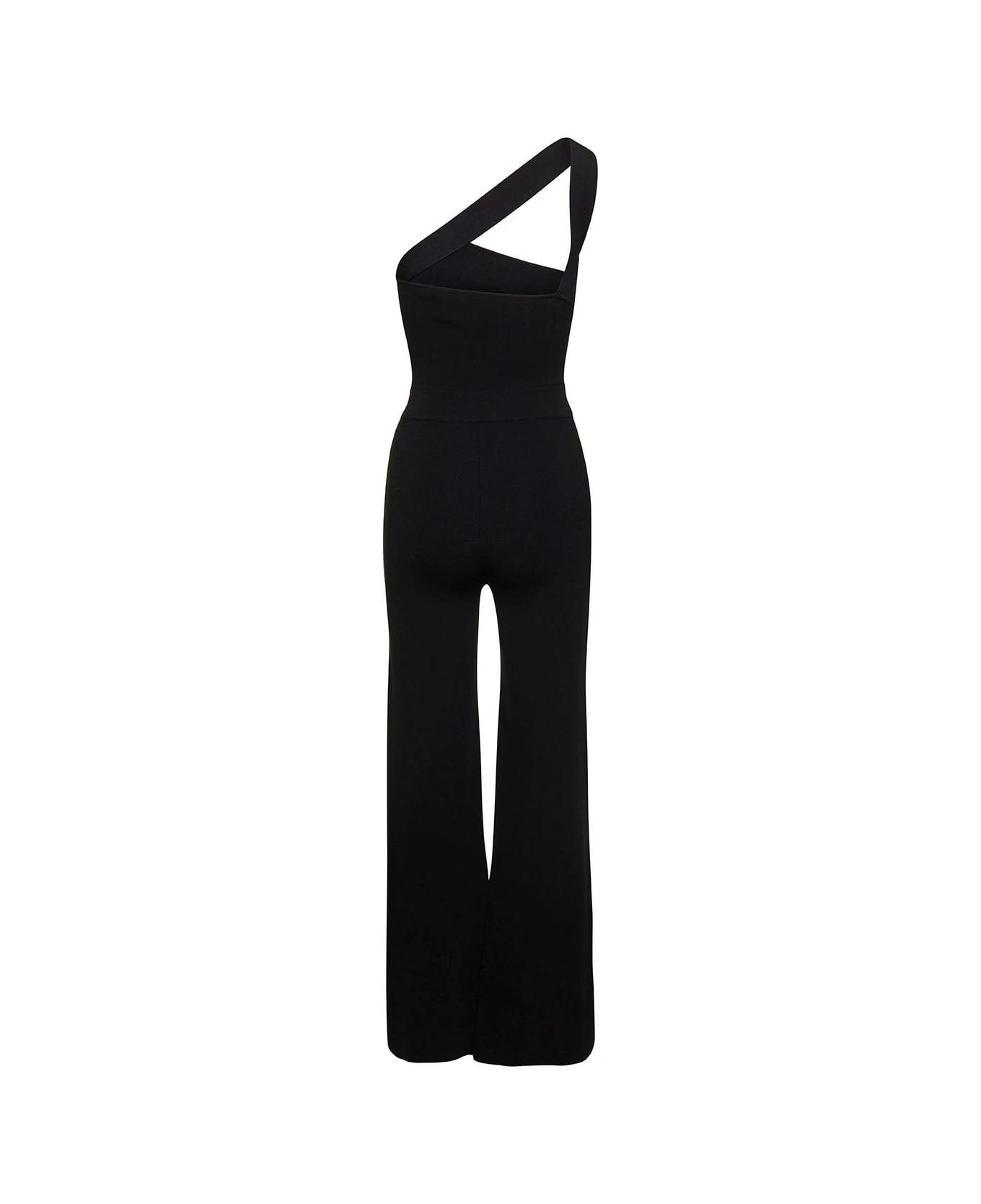 JumpsuitAsymmetric designSleevelessHalterneckFlared pantsBlackStretched rayonRegular fit