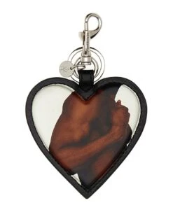 Heart-shaped key ring realized in smooth calf leather characterized by Golden Boys print at the front and embossed logo at the back.