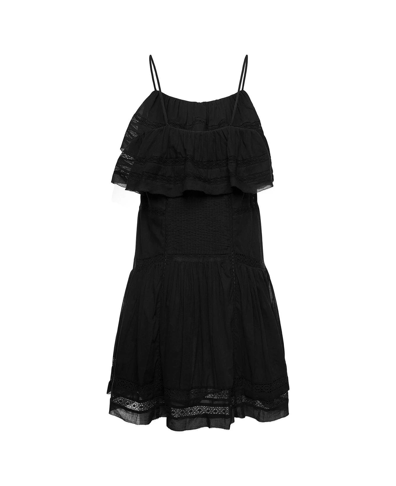 MinidressTiered design with ruffles and broderie Shoulder straps Asymmetric hem Above-knee lenghtBlack Cotton Regular fit
