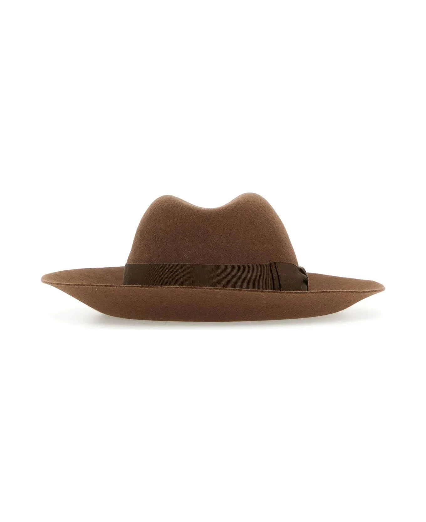 Hat realized in felt enriched by tonal logoed fabric bow.